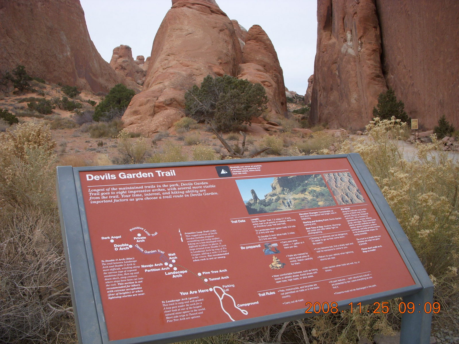 2008 November 25, Tuesday, 6pr-uz6.jpg * Arches National Park - Devils Garden trail sign