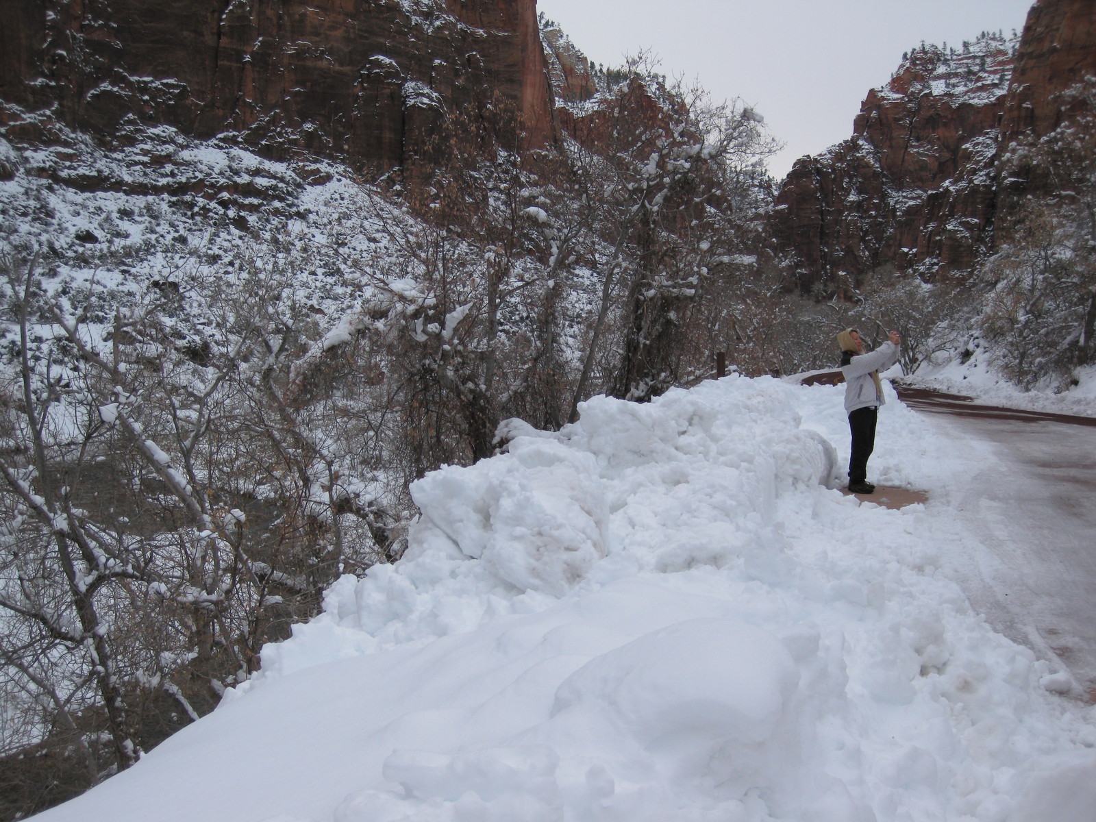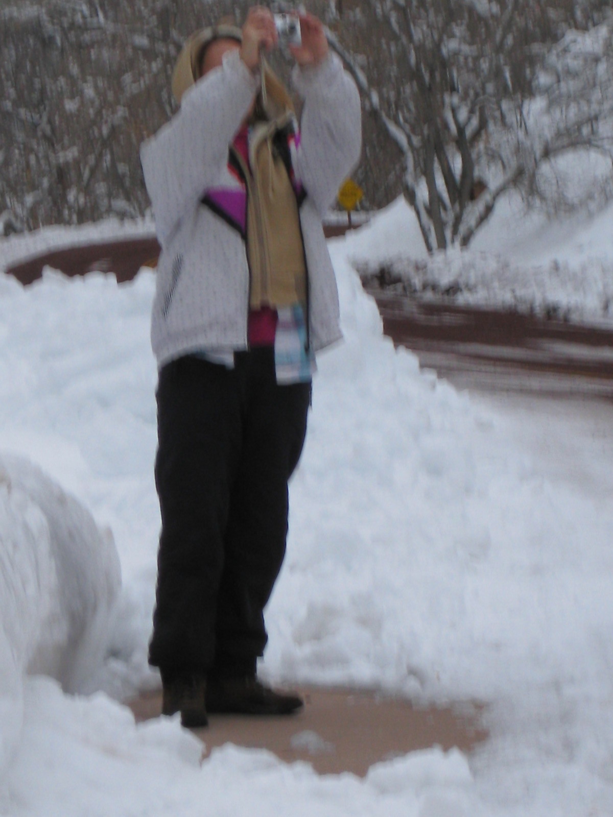 2008 December 22, Monday, 6qn-r0j.jpg * beth's Sunday zion-trip pictures - Zion National Park - Debbie taking a picture