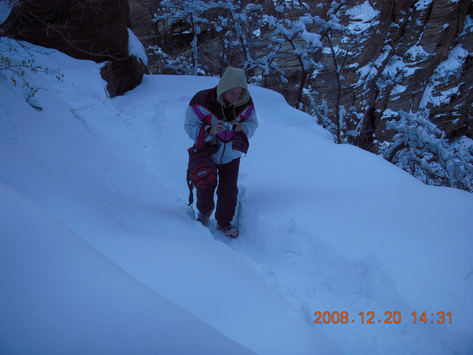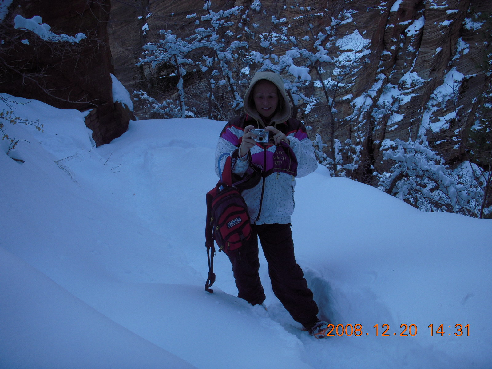 2008 December 21, Sunday, 6qm-tz8.jpg * Zion National Park - Angels Landing hike - Beth taking a picture