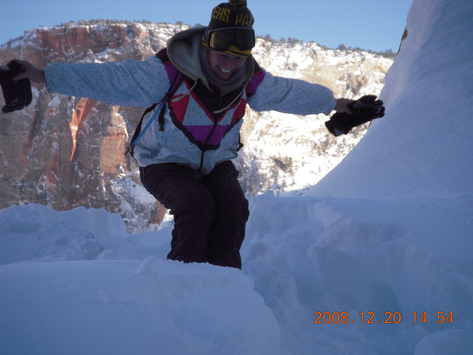2008 December 21, Sunday, 6qm-tz1.jpg * Zion National Park - Angels Landing hike - Debbie making snow angel