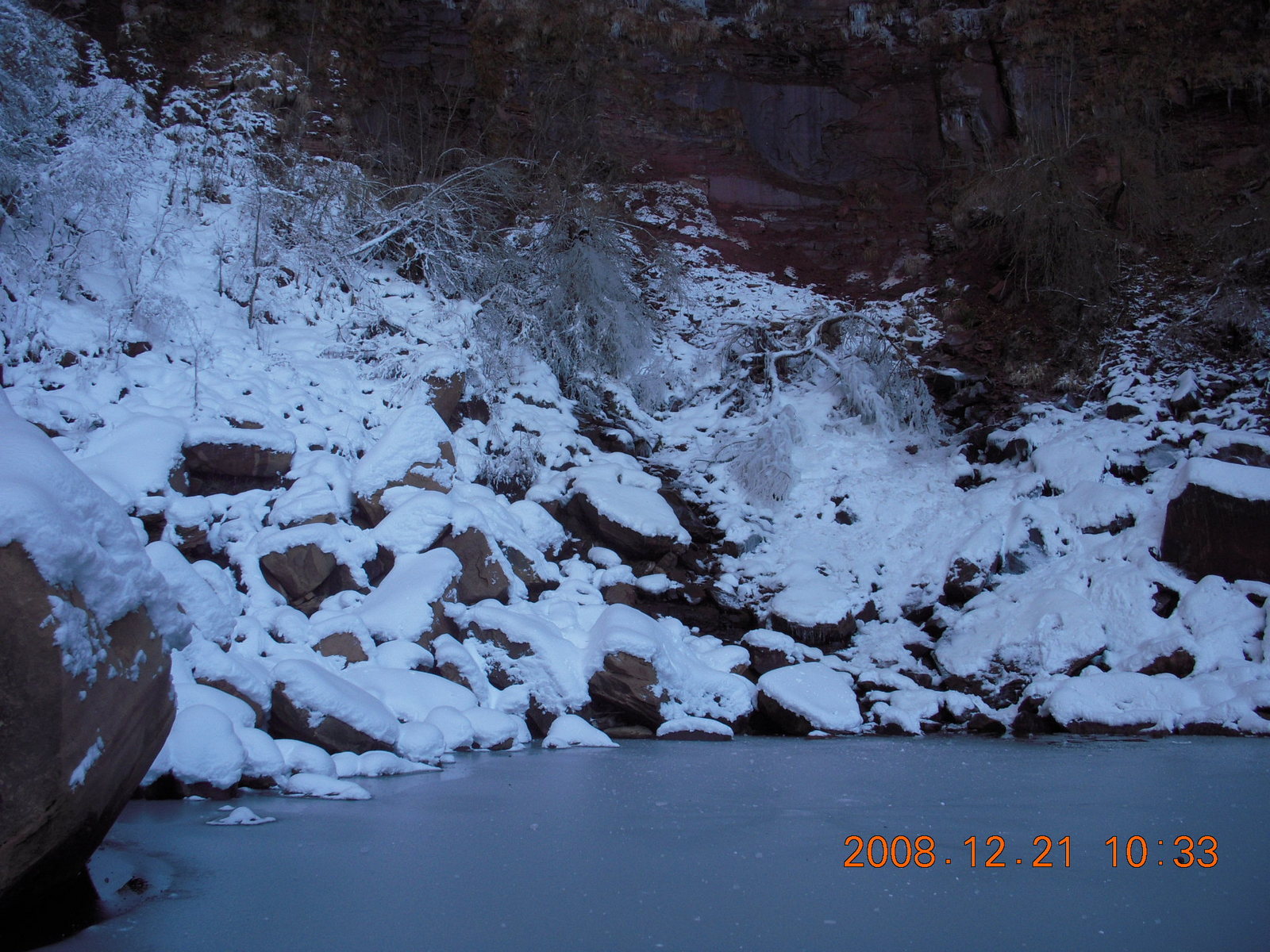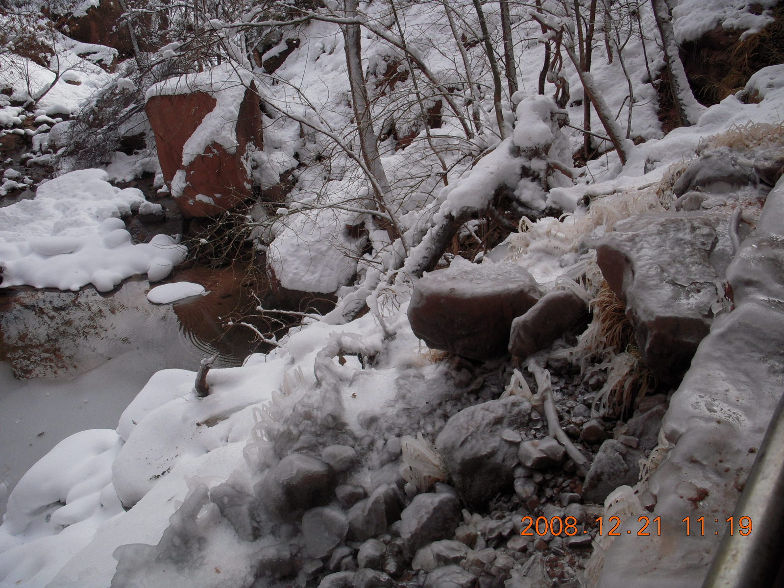 2008 December 21, Sunday, 6qm-v08.jpg * Zion National Park - ice and snow with flash