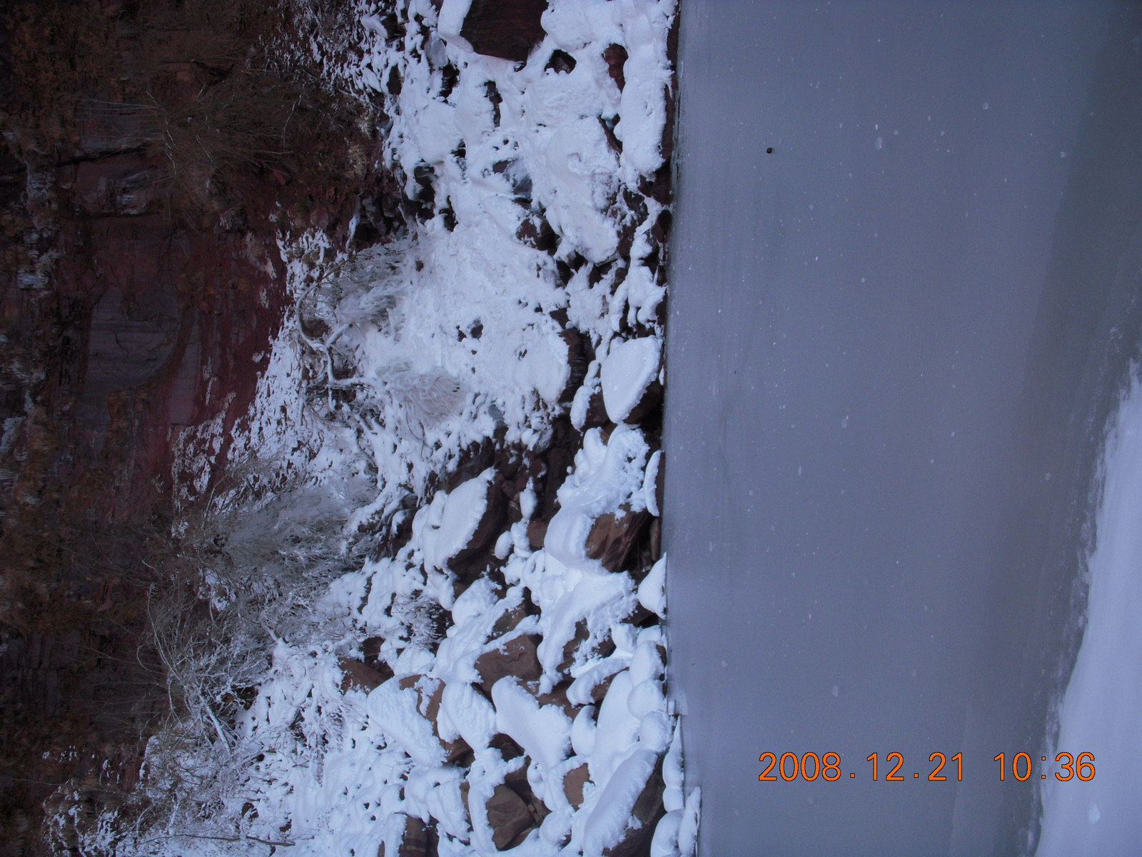 2008 December 21, Sunday, 6qm-v06.jpg * Zion National Park - ripply ice with flash