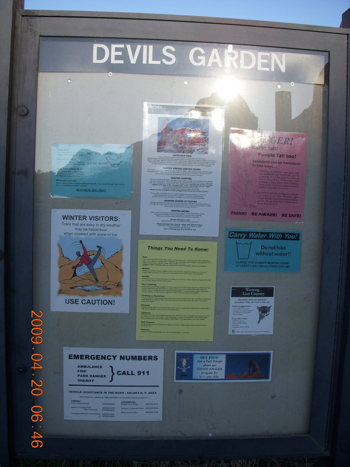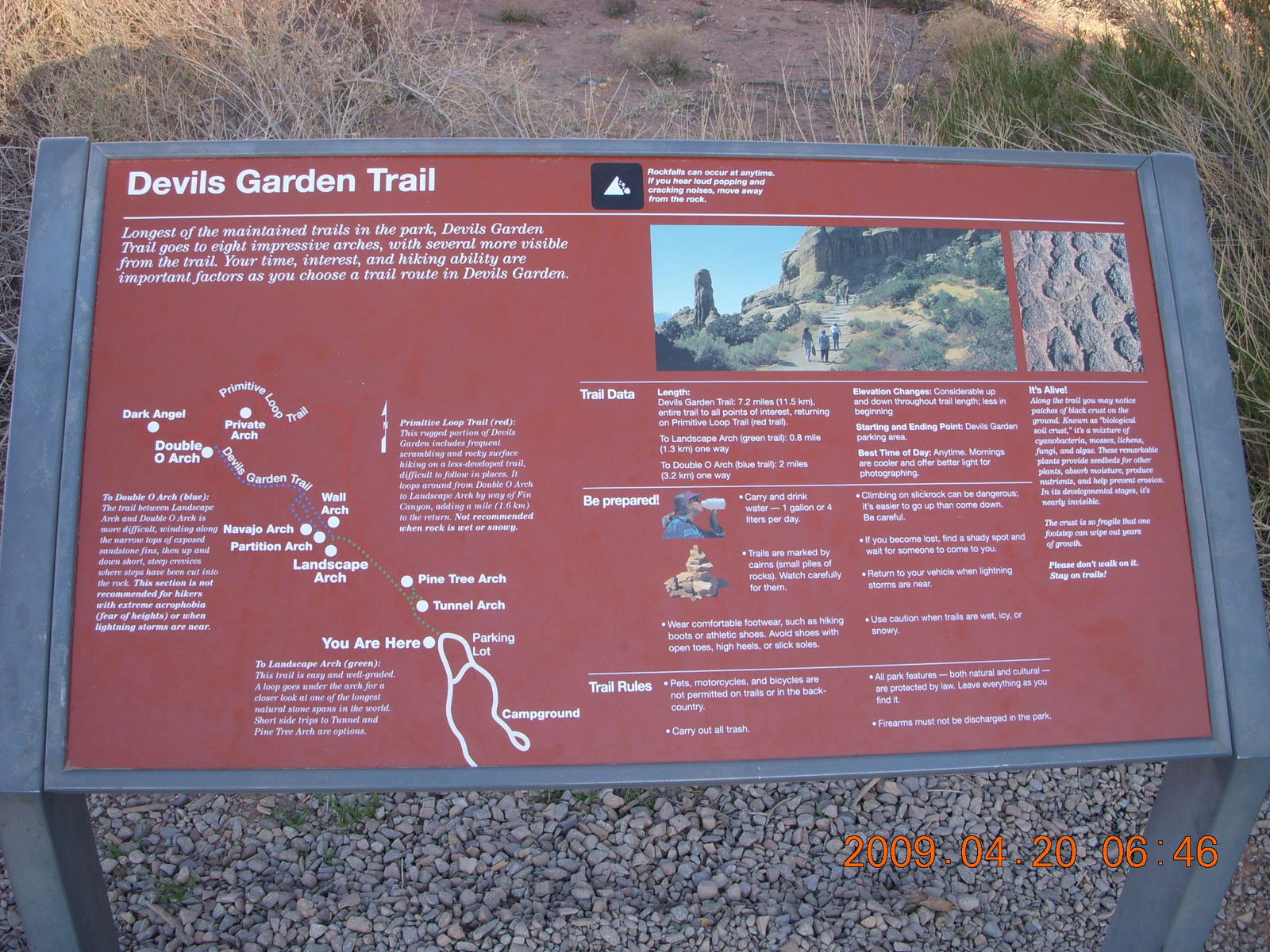 2009 April 20, Monday, 6ul-vsc.jpg * Arches National Park - Devil's Garden hike - sign