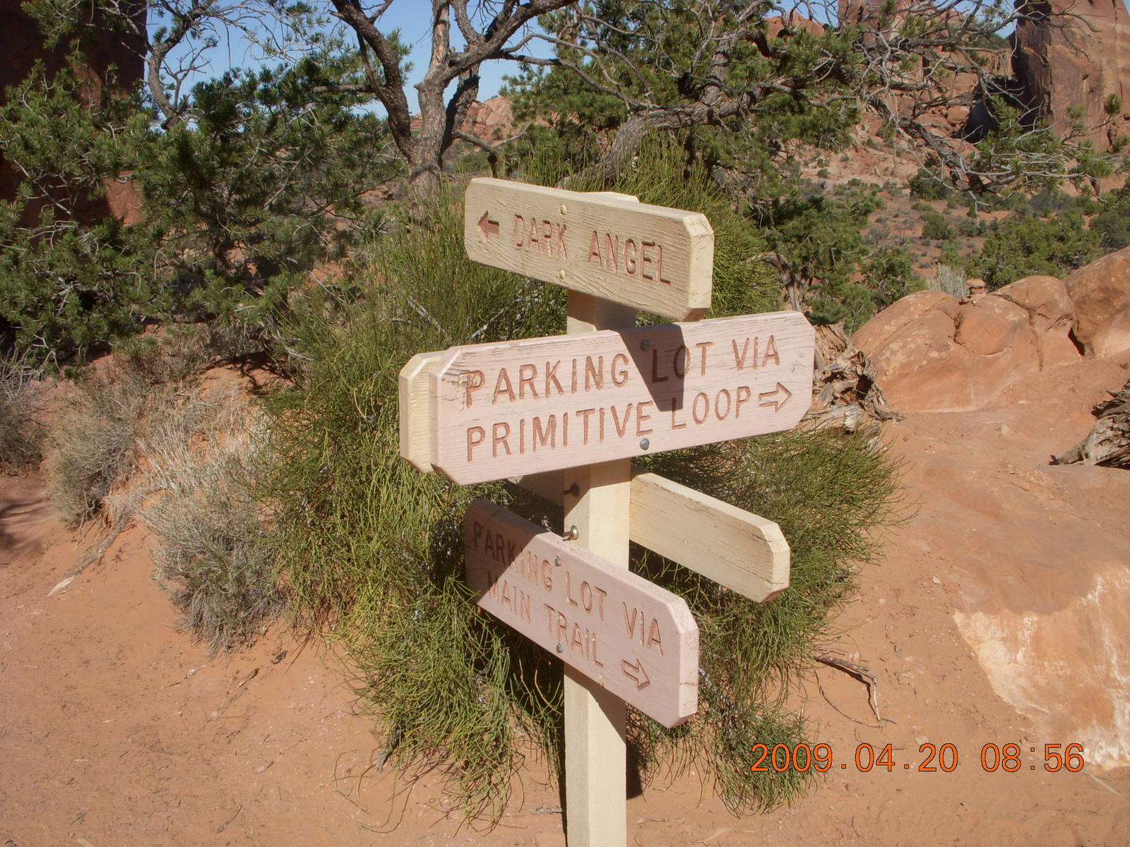 2009 April 20, Monday, 6ul-vtp.jpg * Arches National Park - Devil's Garden hike - signpost