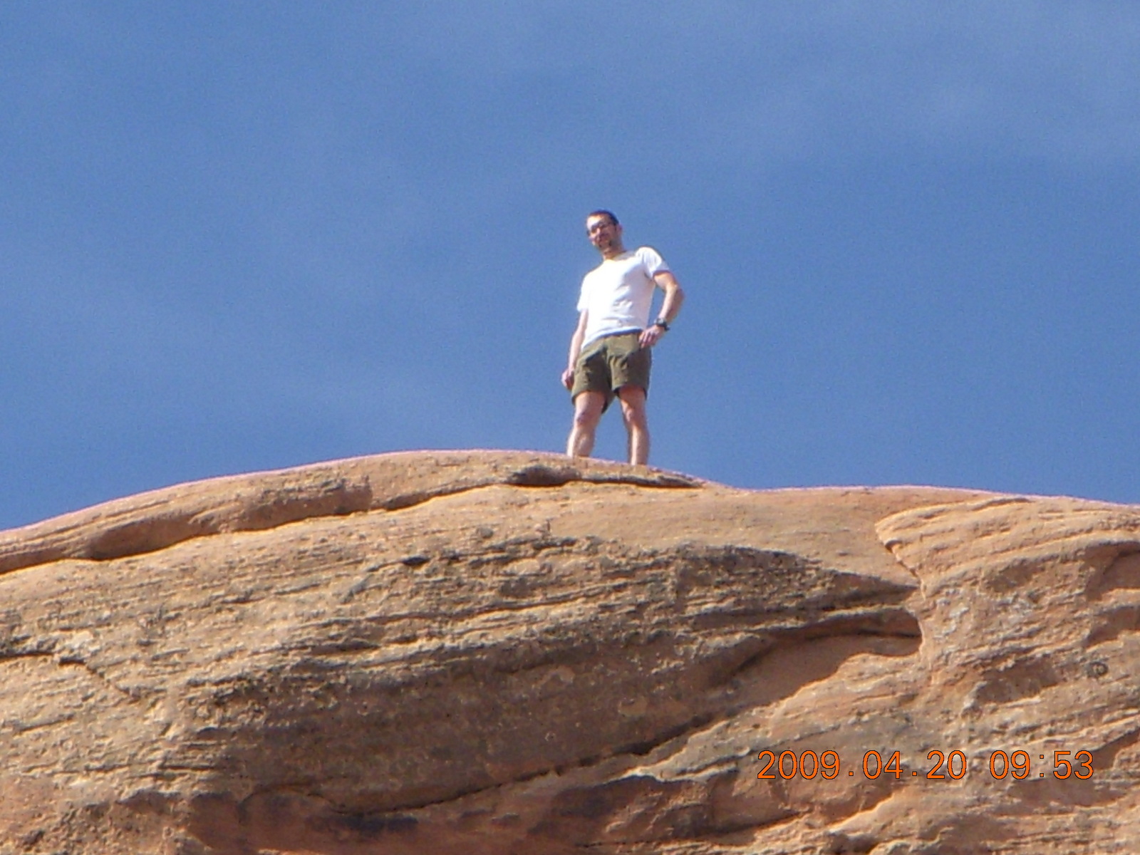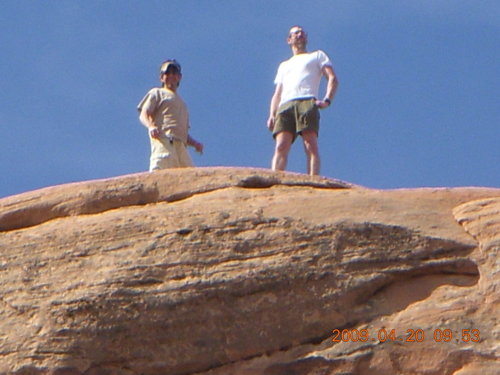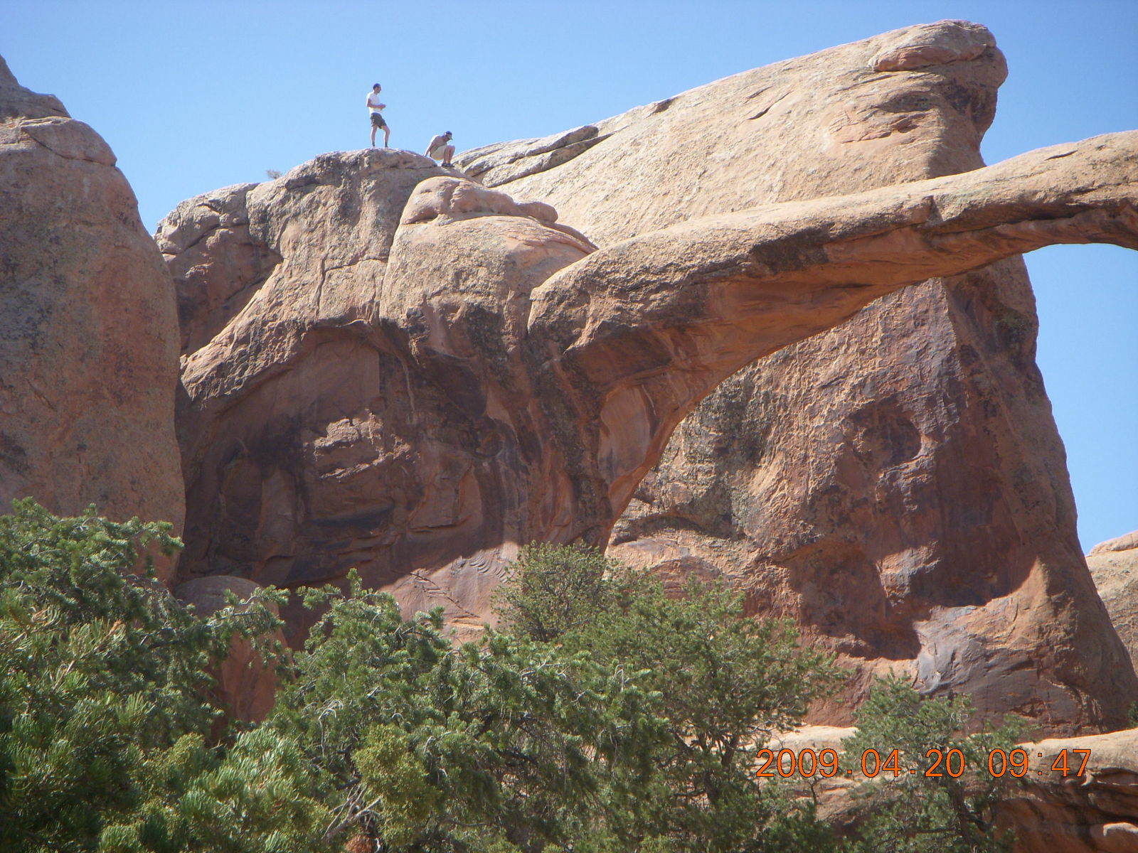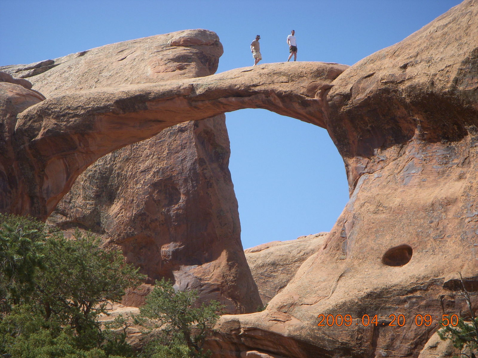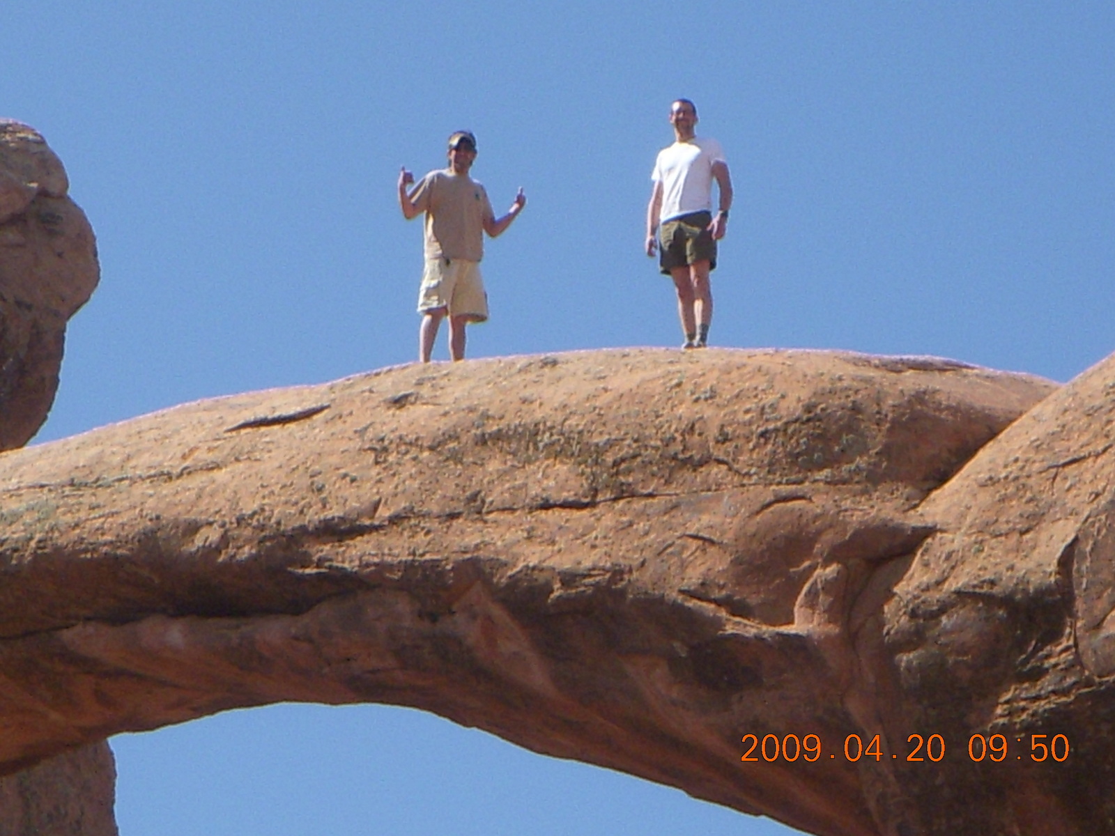 2009 April 20, Monday, 6ul-vum.jpg * Arches National Park - Devil's Garden hike - two fellows atop Double-O Arch