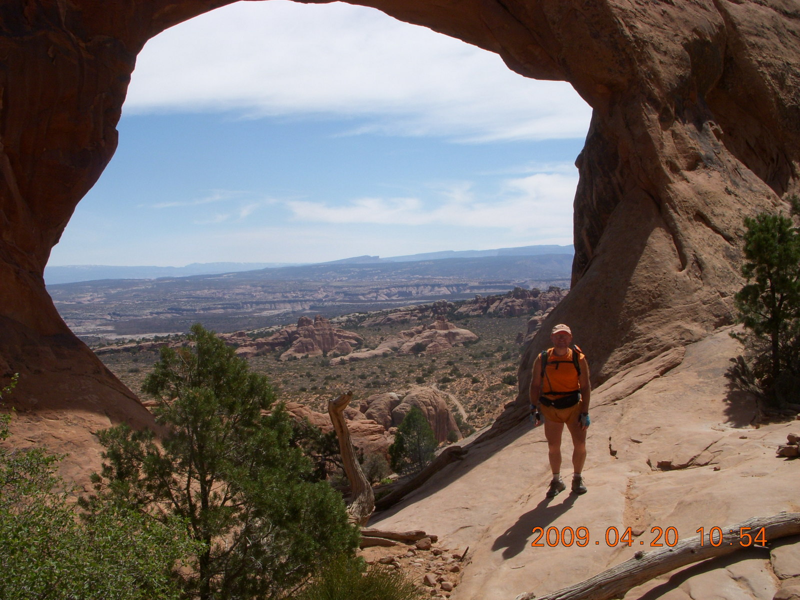 2009 April 20, Monday, 6ul-vtt.jpg * Arches National Park - Devil's Garden hike - Adam in Double-O Arch