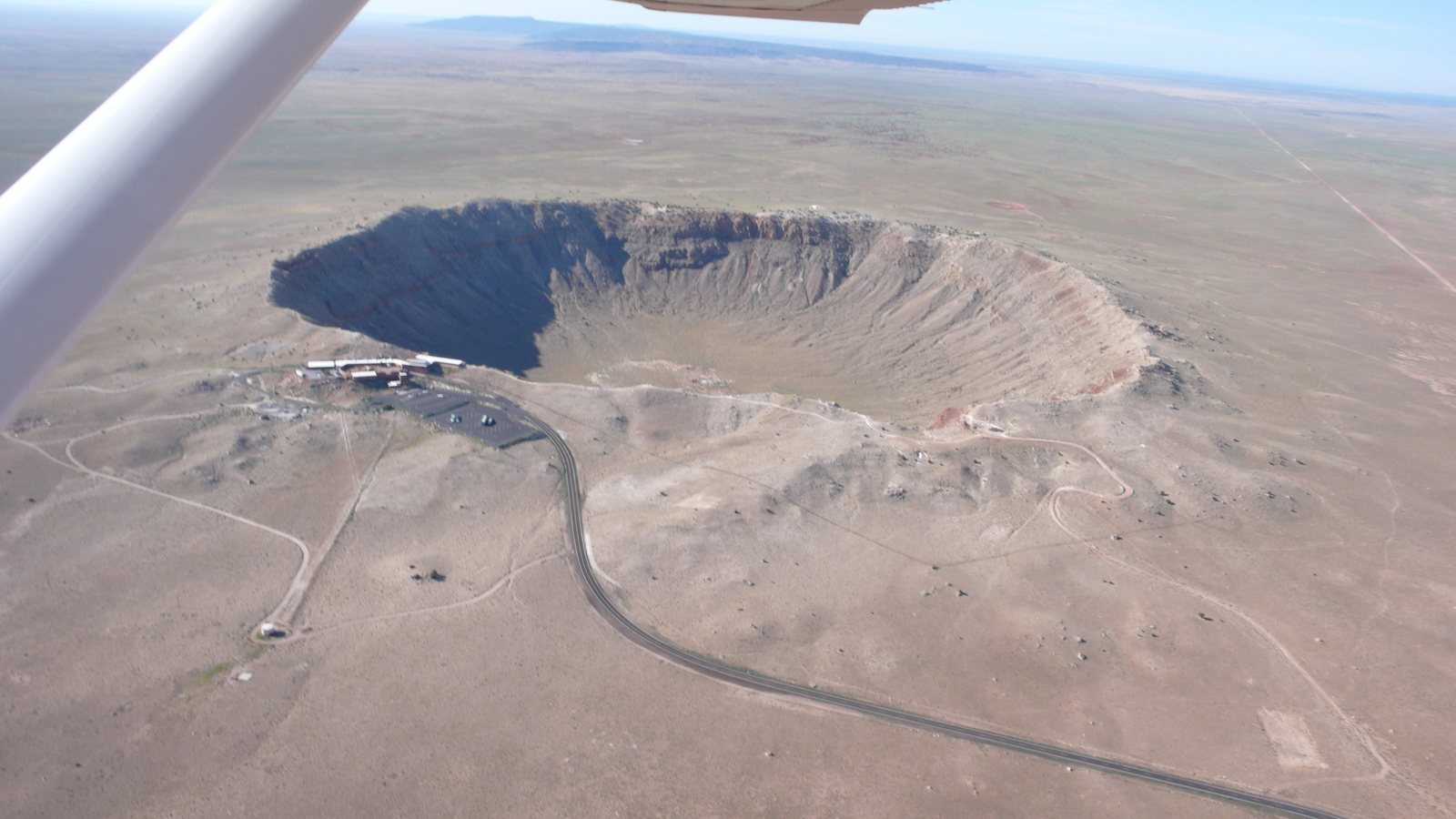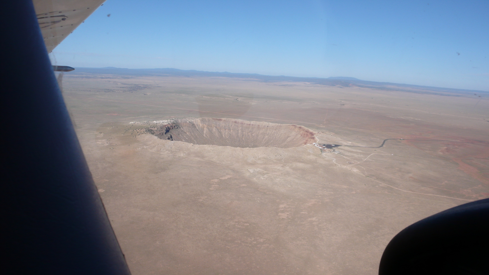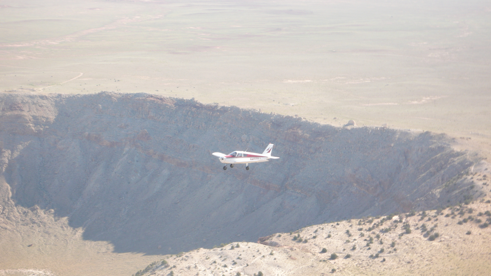 2009 July 2, Thursday, 6x2-8l7.jpg * Markus's photo - meteor crater and N4372J in-flight photo