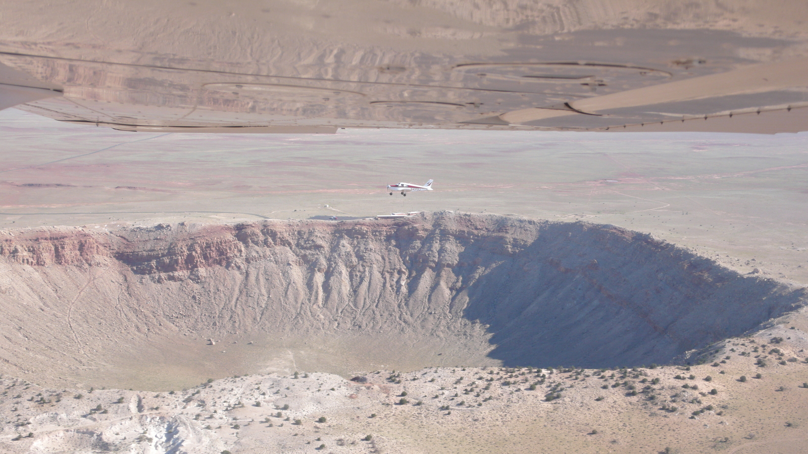 2009 July 2, Thursday, 6x2-8l9.jpg * Markus's photo - meteor crater and N4372J in-flight photo
