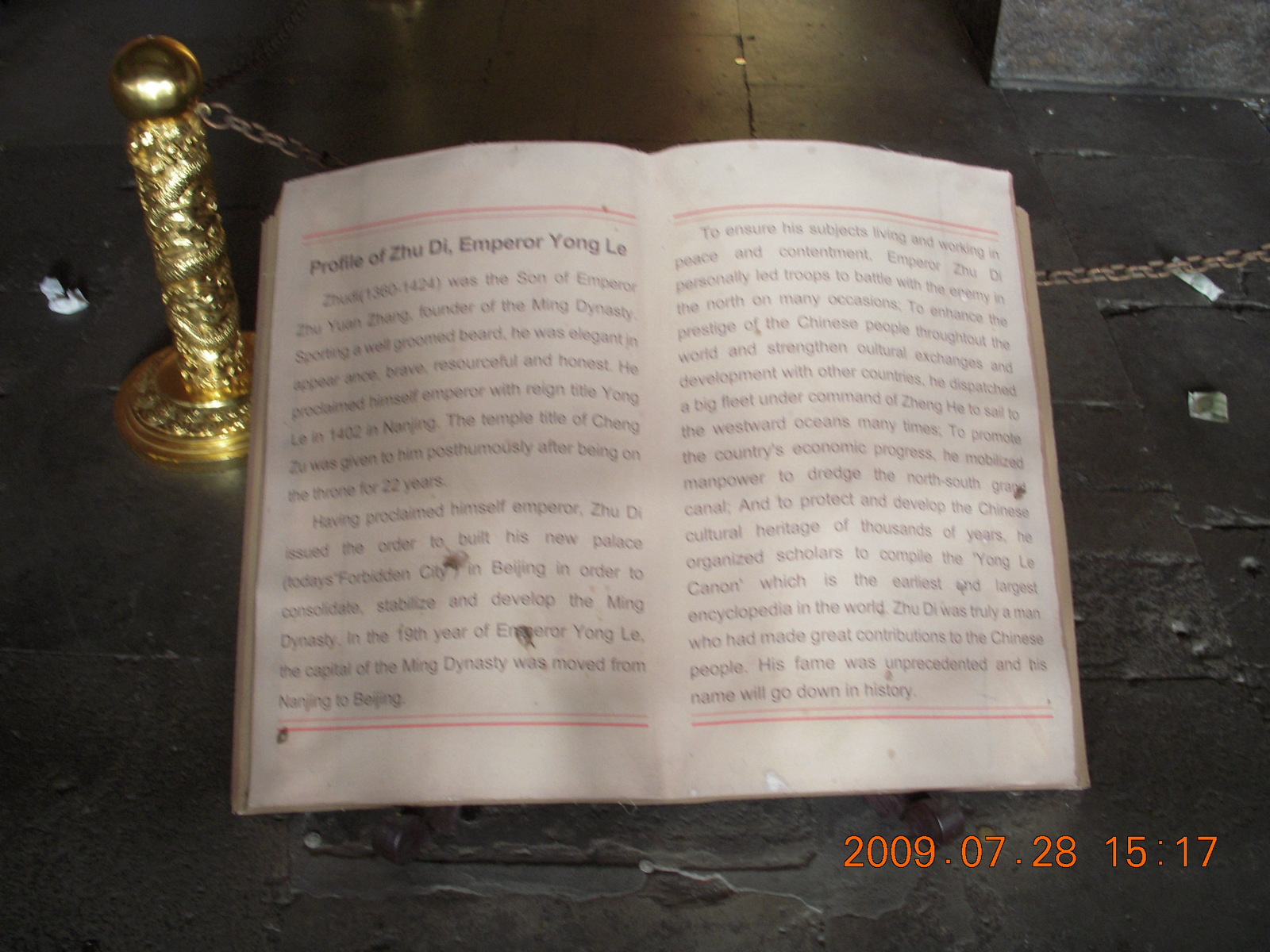 180 6xu. China eclipse - Beijing tour - Ming Tomb - 'book' sign