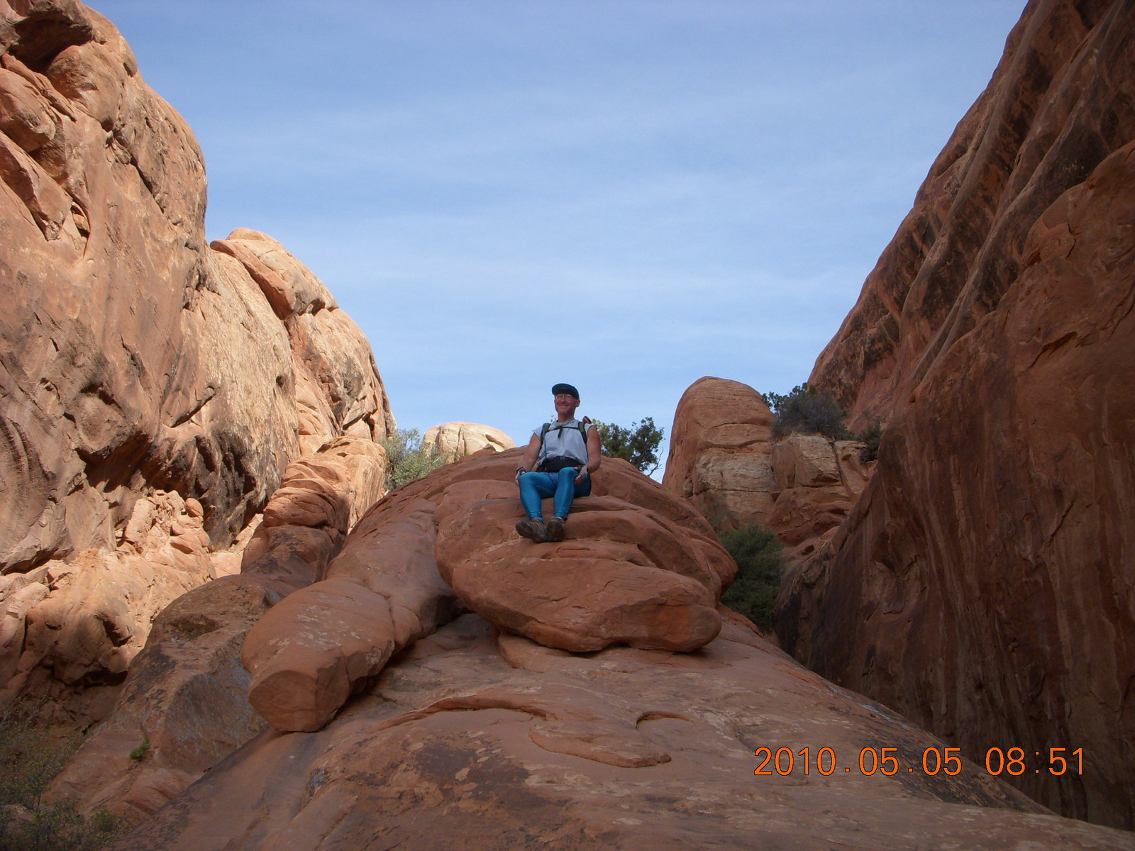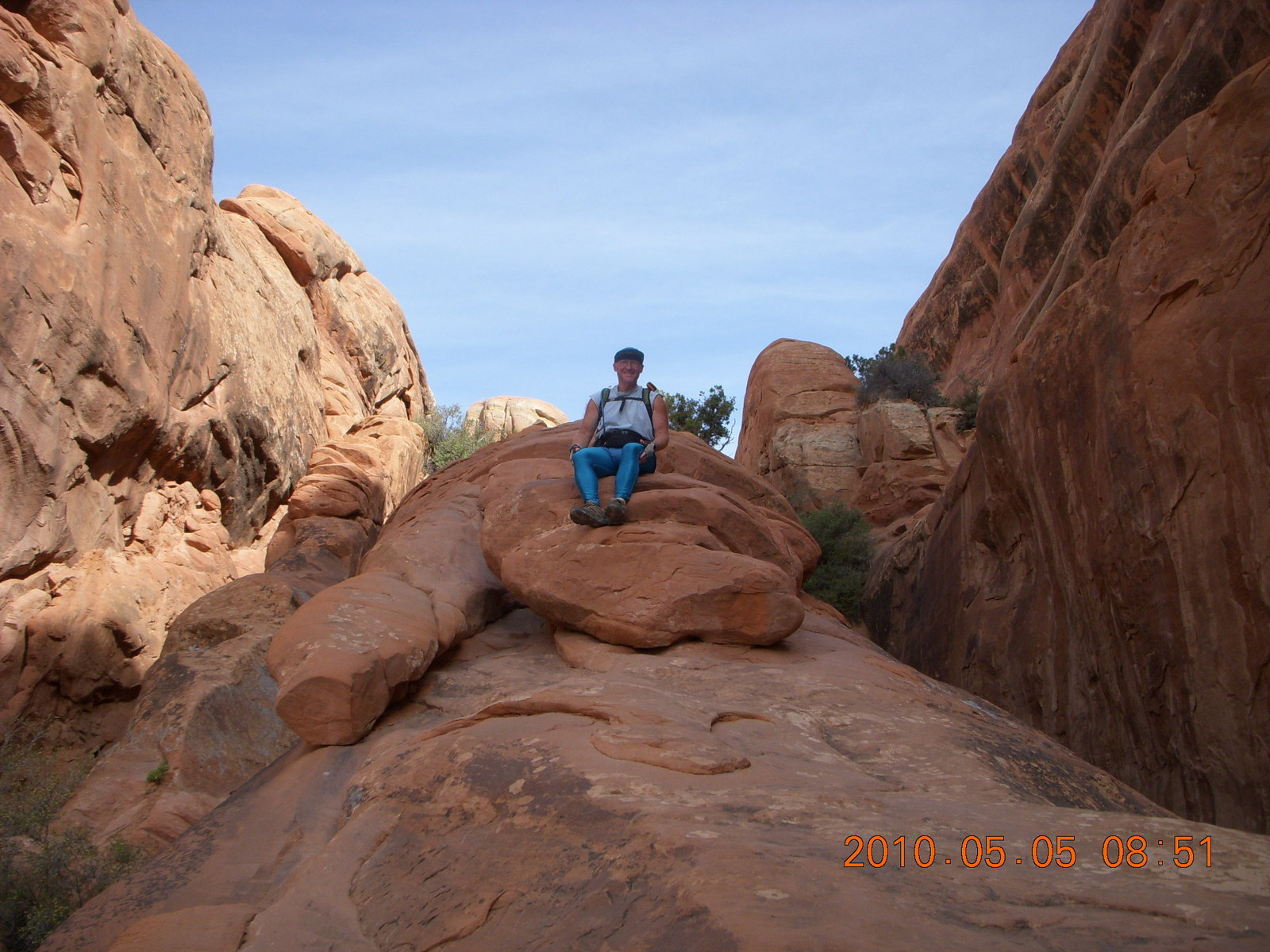 2010 May 6, Thursday, 776-nfw.jpg * Arches National Park - Devil's Garden and Dark Angel hike - Adam in hole in the rock