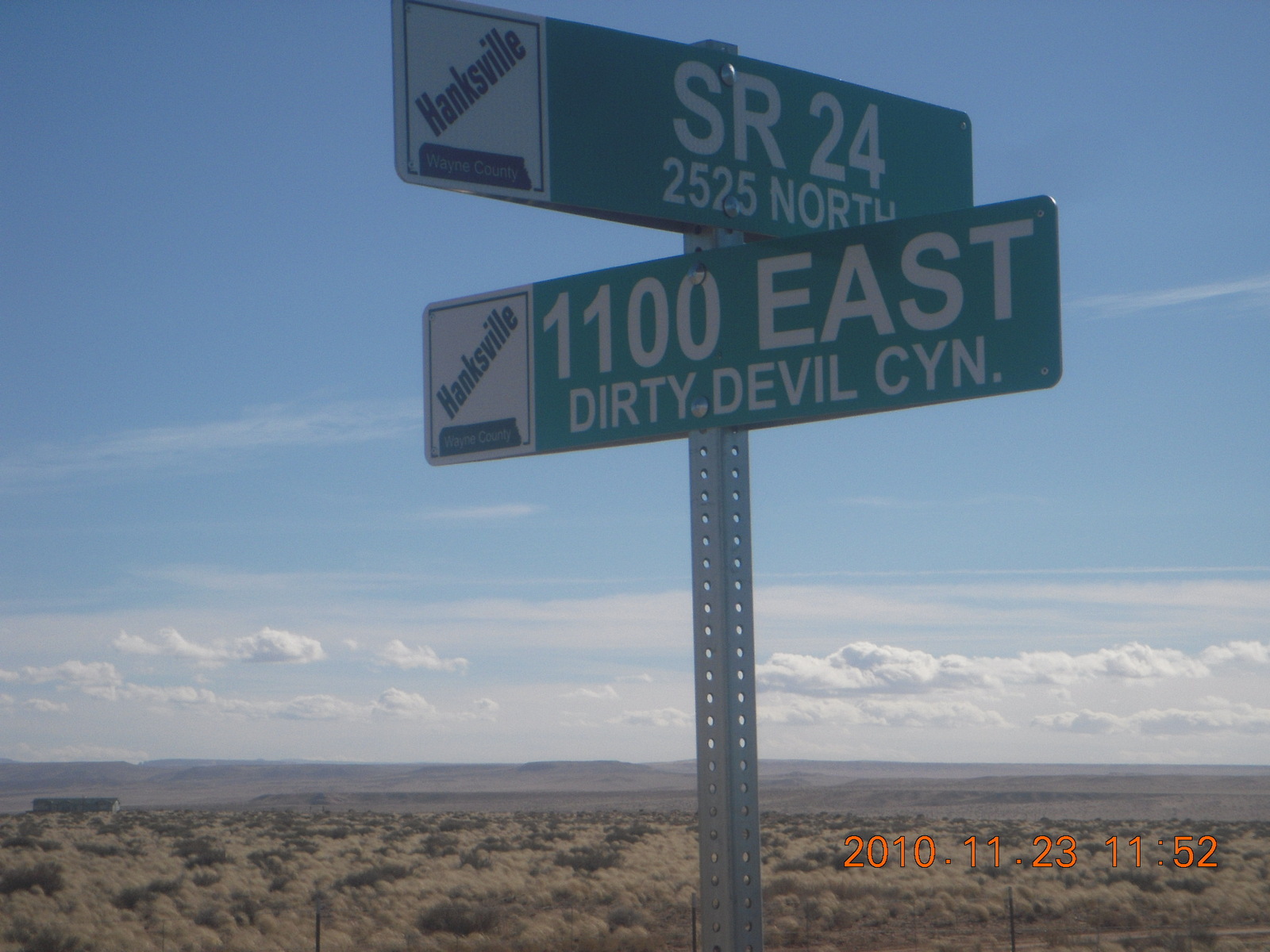 2010 November 24, Wednesday, 7dq-1hu.jpg * Moab trip - Hanksville run - Dirty Devil Canyon road sign