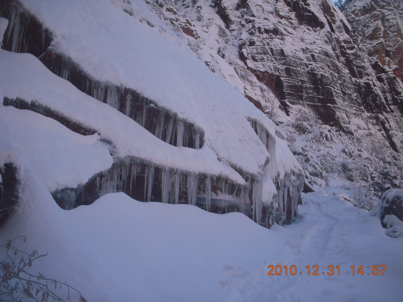 2011 January 13, Thursday, 7fd-om6.jpg * Zion National Park trip - Weeping Rock path - icicles