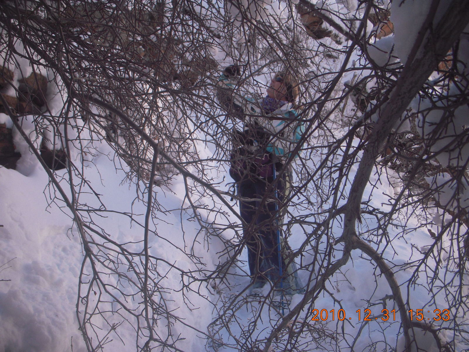 2011 January 13, Thursday, 7fd-oli.jpg * Zion National Park trip - Hidden Canyon hike - Sheri behind trees