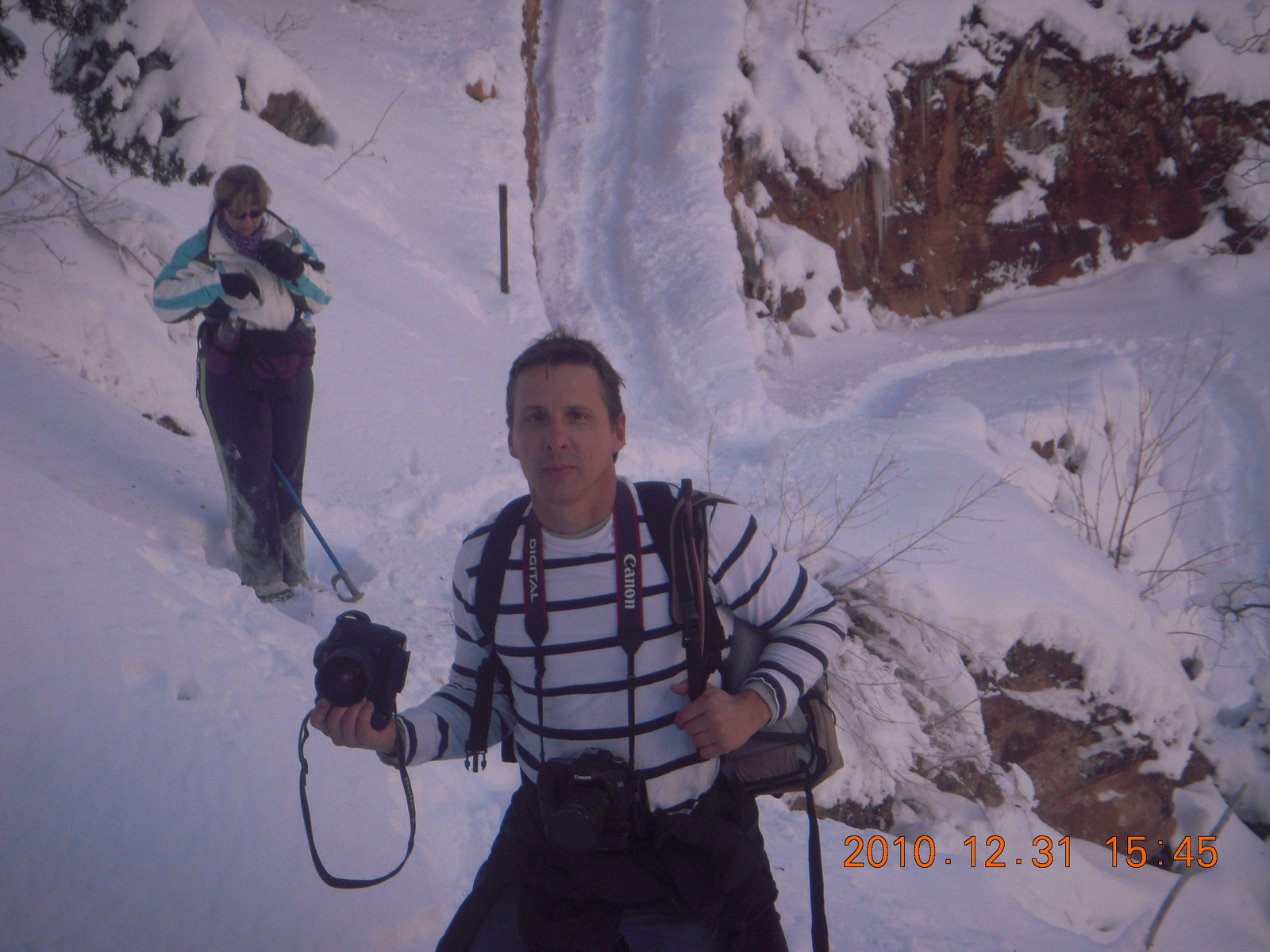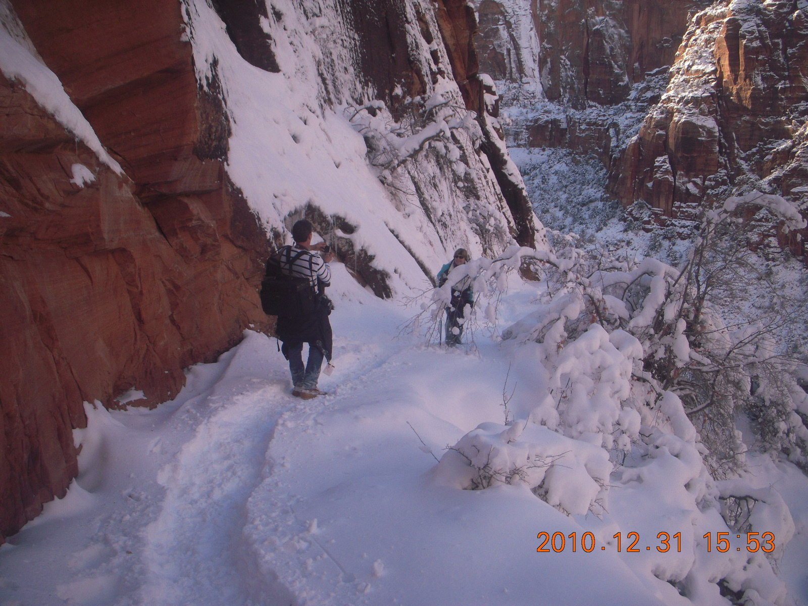 2011 January 13, Thursday, 7fd-ols.jpg * Zion National Park trip - Hidden Canyon hike - Luiz taking a picture of Sheri
