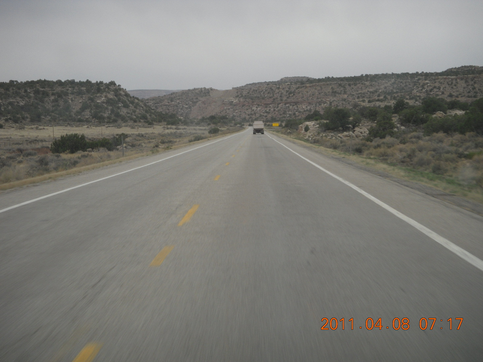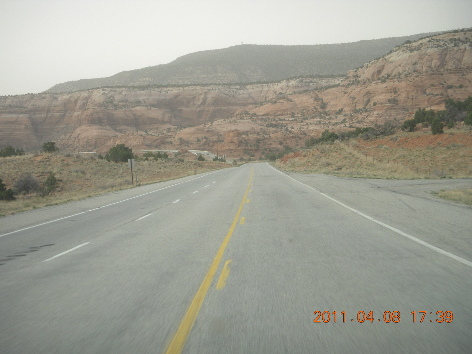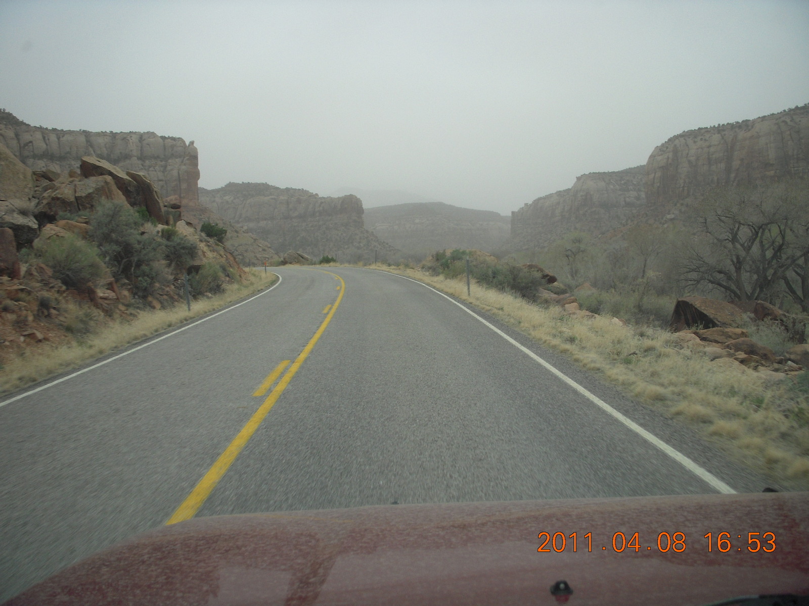 330 7j8. drive from Needles back to Moab - muddy rain