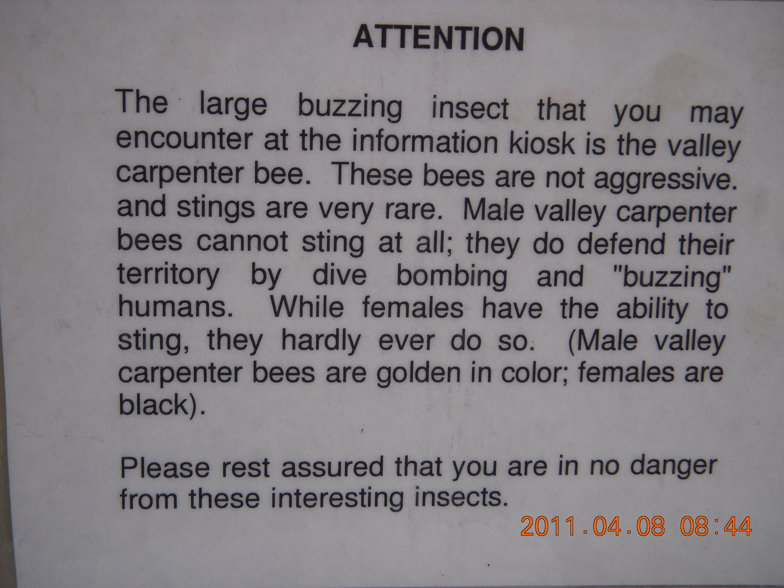 2011 April 8, Friday, 7j8-vuf.jpg * Anticline Overlook - sign about bees