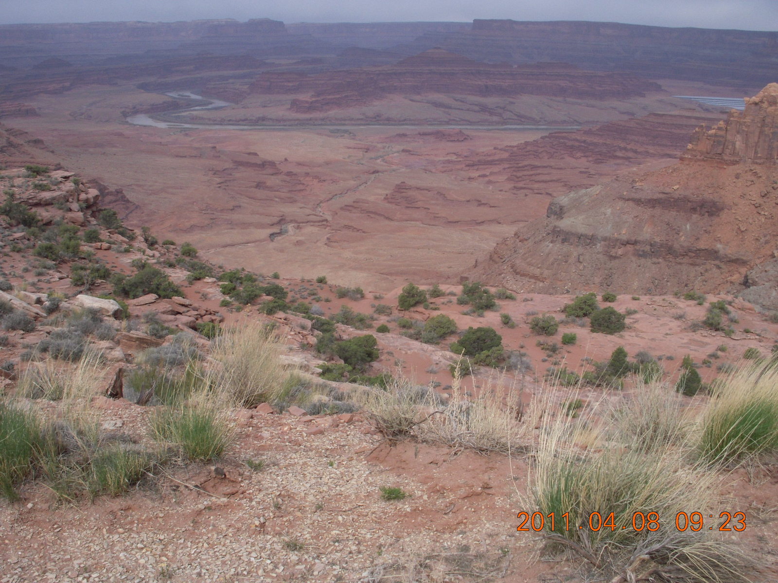 2011 April 8, Friday, 7j8-vu4.jpg * dirt road drive to Anticline Overlook - Rodeo at viewpoint
