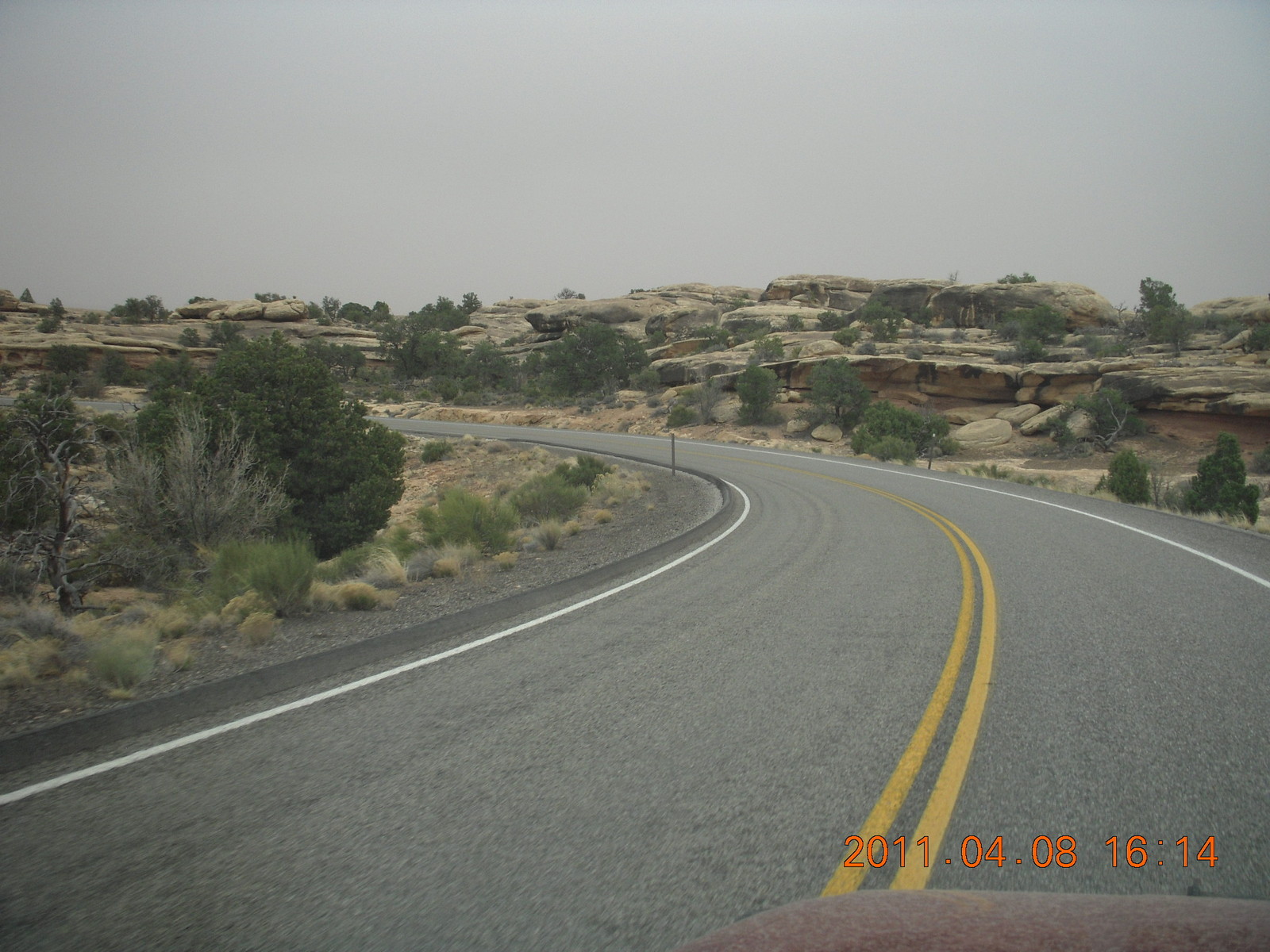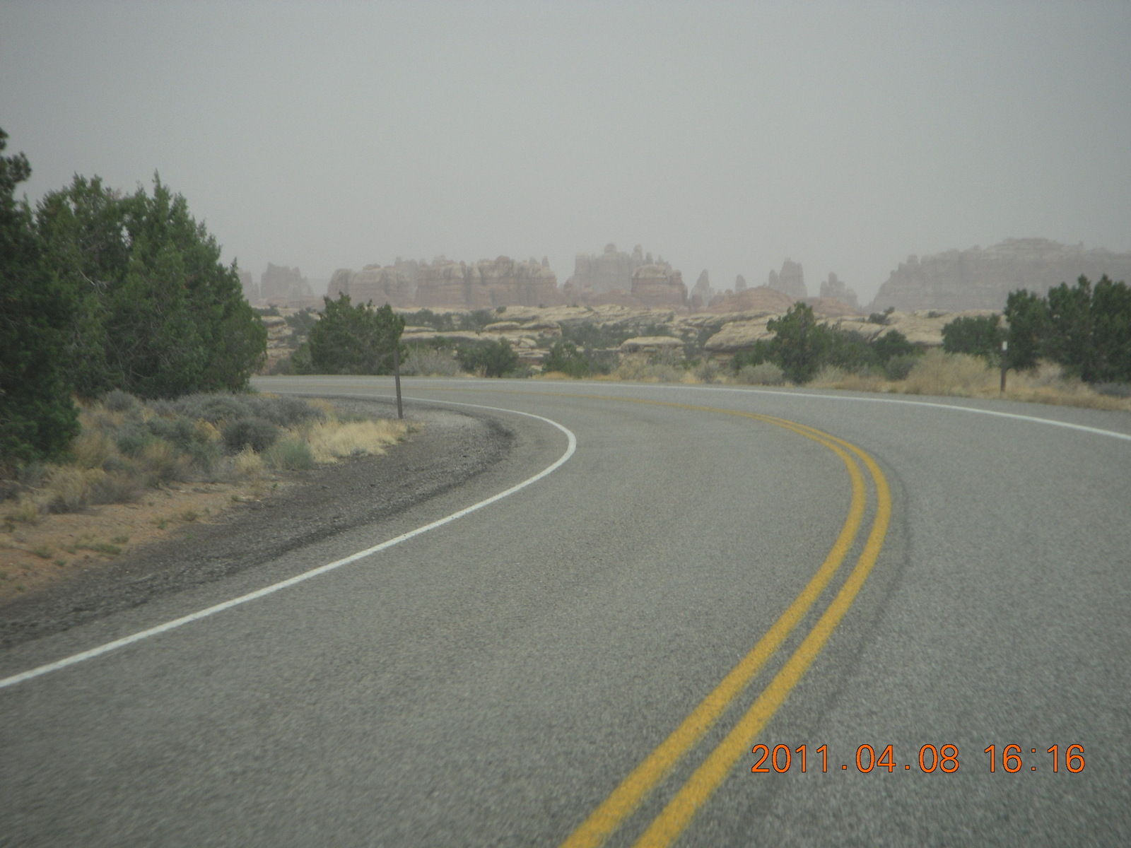 286 7j8. Canyonlands Needles drive in the haze