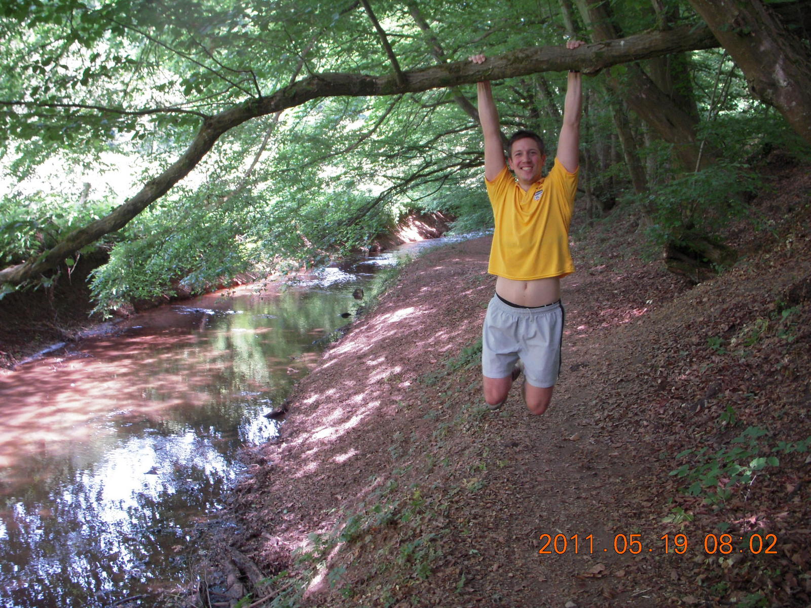 2011 May 21, Saturday, 7km-2ay.jpg * Neunkirchen run - Christoph hanging from a tree