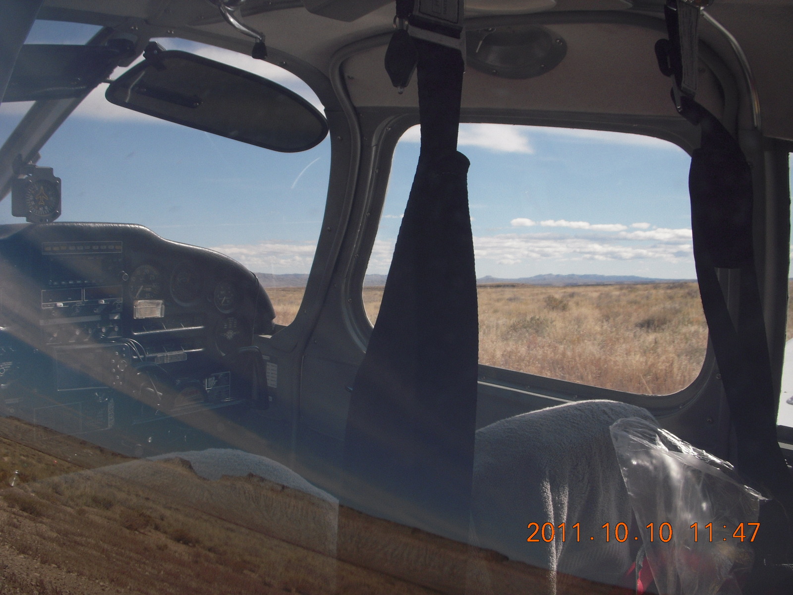 2011 October 11, Tuesday, 7qb-0ef.jpg * Cedar Mountain airstrip - view through N8377W windows