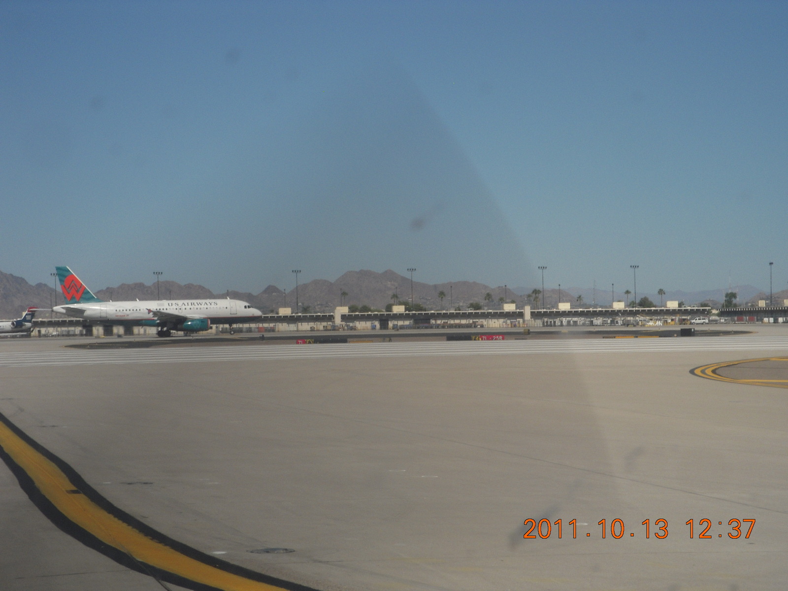 2011 October 13, Thursday, 7qd-m4q.jpg * airplane waiting for takeoff at Sky Harbor (PHX)