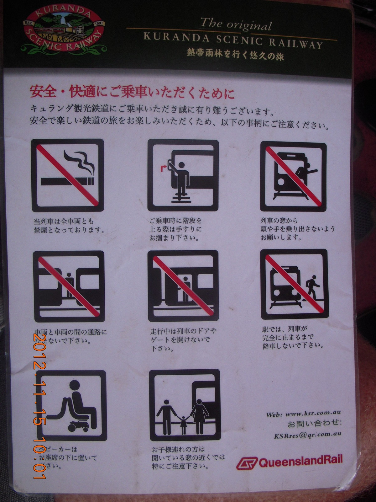 2012 November 15, Thursday, 83f-8m0.jpg * Kurunda rain forest tour - scenic railway - safety sign in Japanese