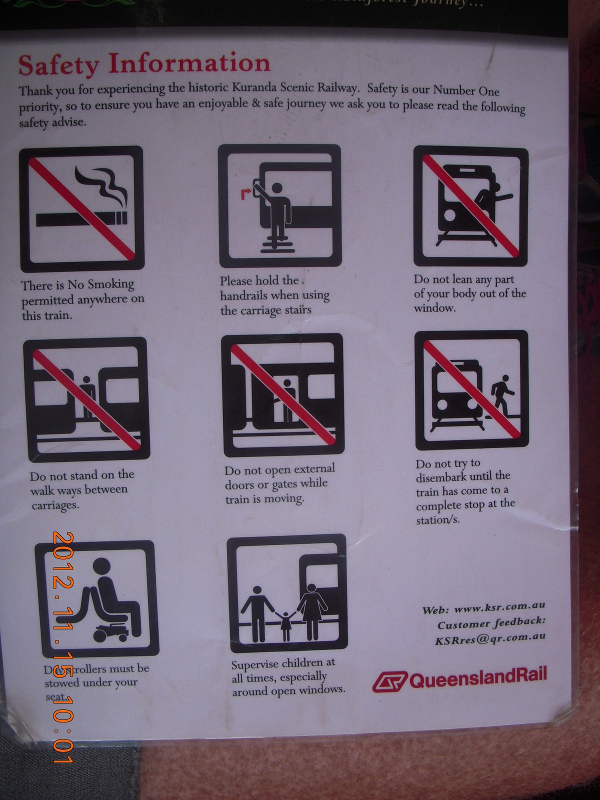2012 November 15, Thursday, 83f-8m1.jpg * Kurunda rain forest tour - scenic railway - safety sign