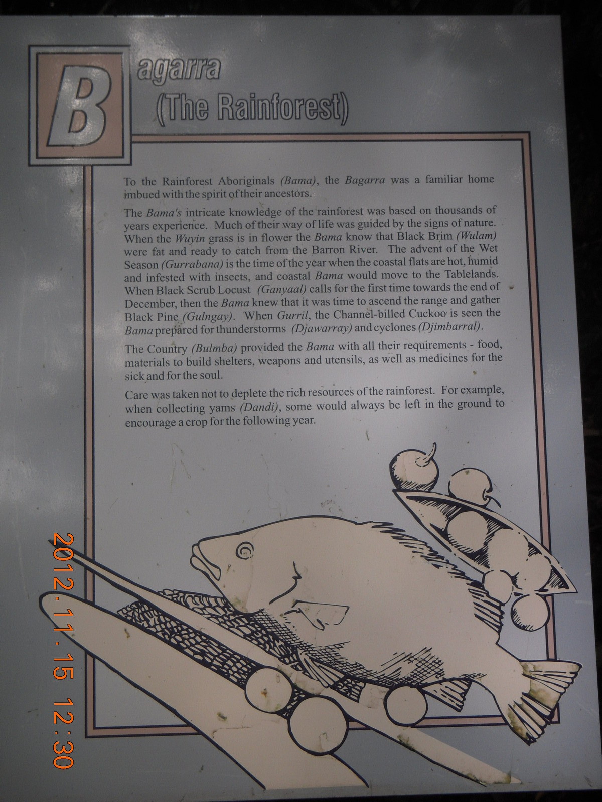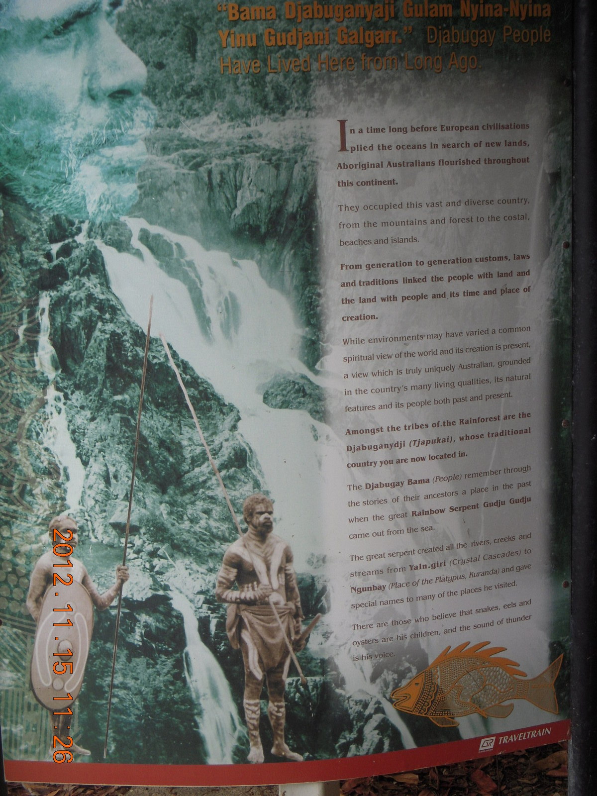 2012 November 15, Thursday, 83f-8li.jpg * Kurunda rain forest tour - scenic railway - sign about gold