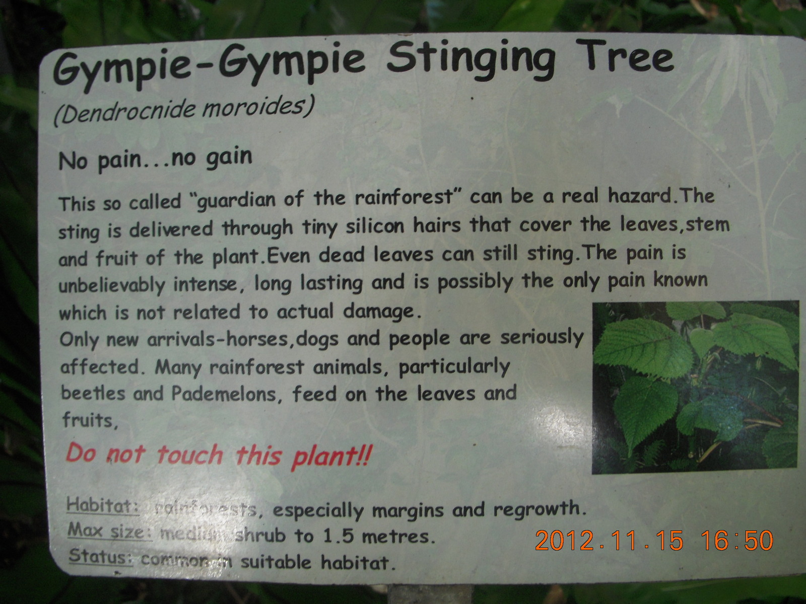 2012 November 15, Thursday, 83f-8mu.jpg * Kurunda rain forest tour - scenic railway - signs