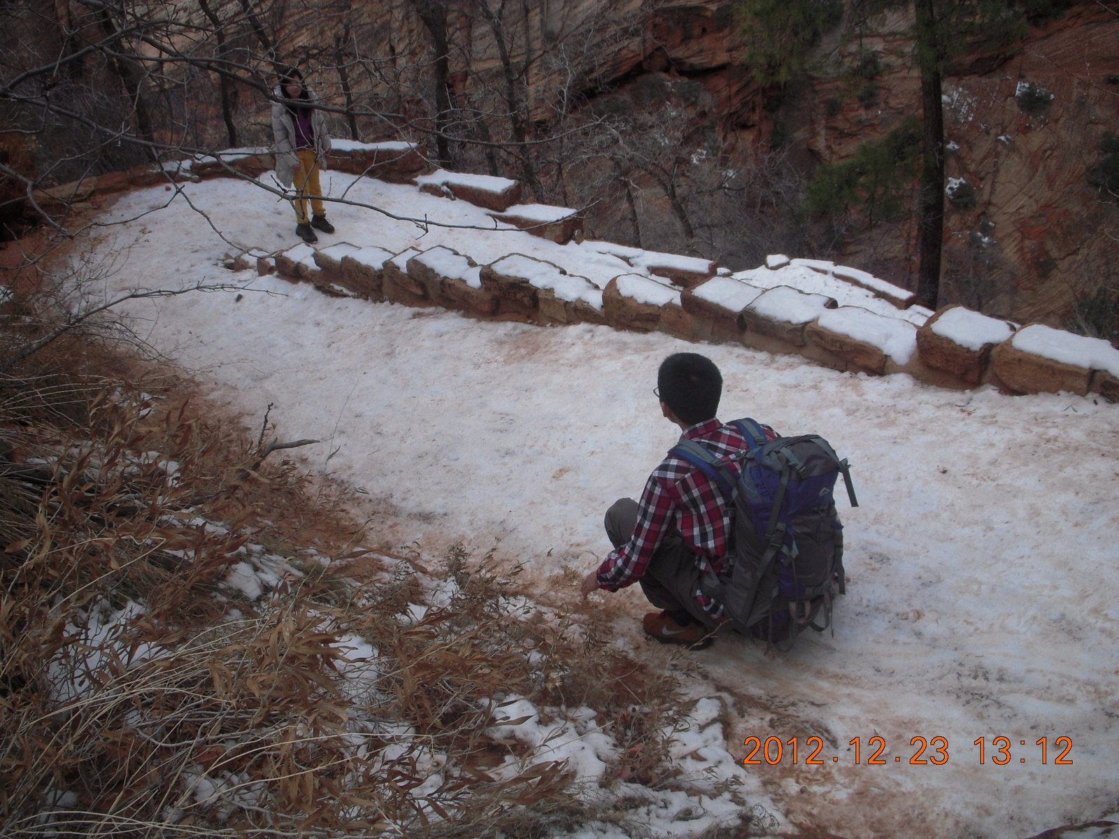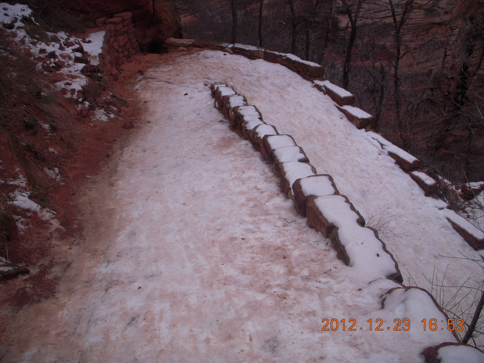 243 84p. Zion National Park - Angels Landing hike - West Rim trail - icy path