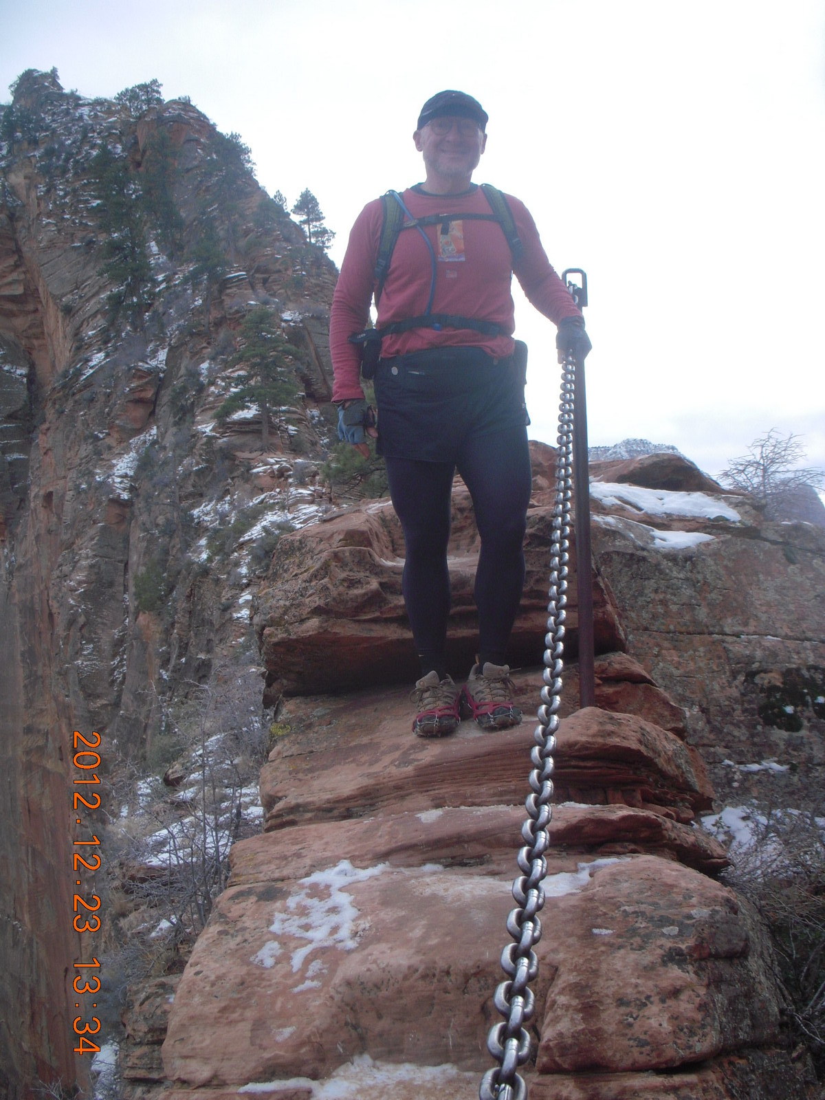 242 84p. Zion National Park - Angels Landing hike - West Rim trail - icy path