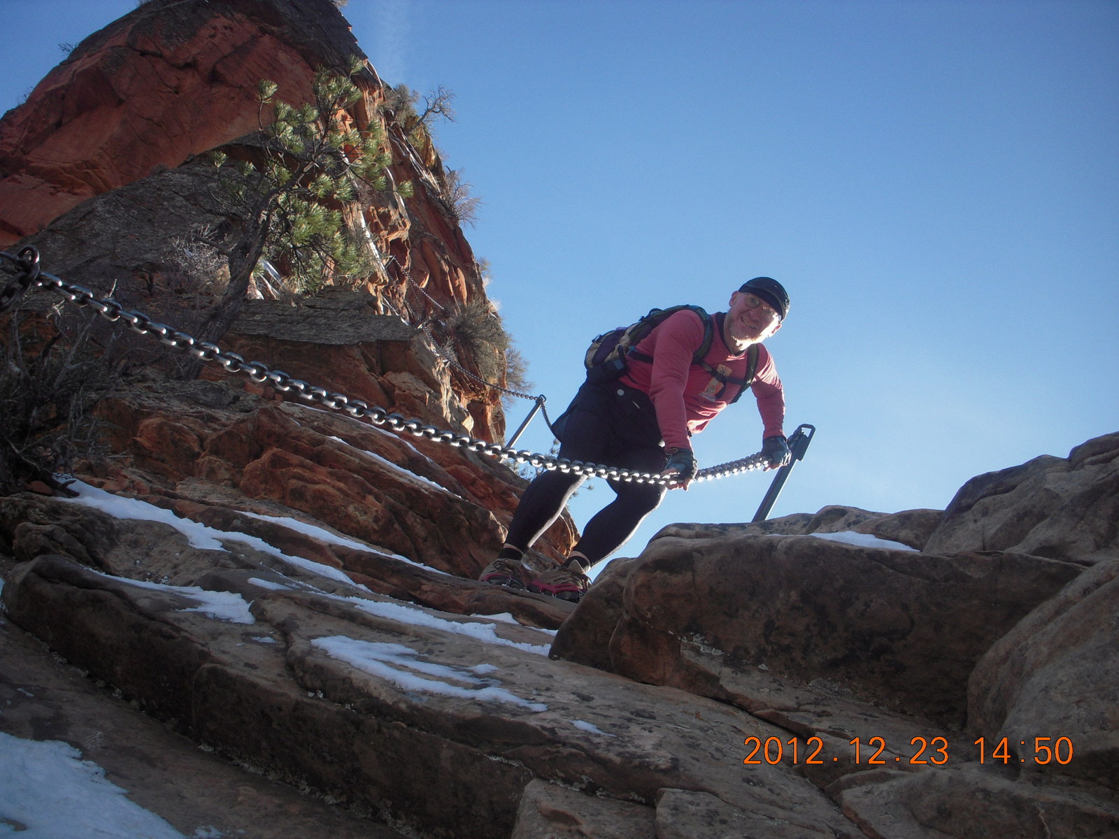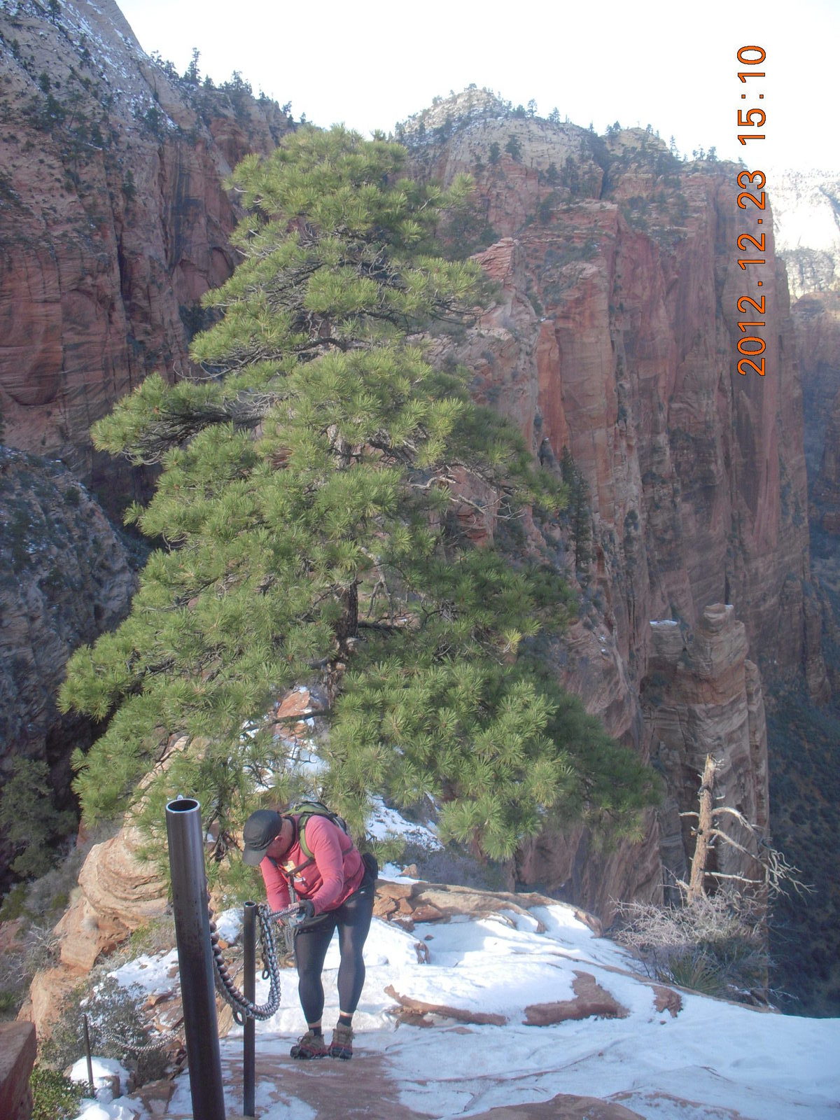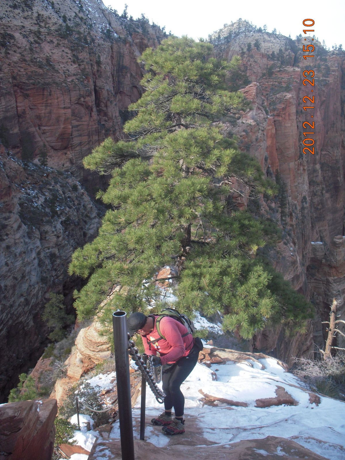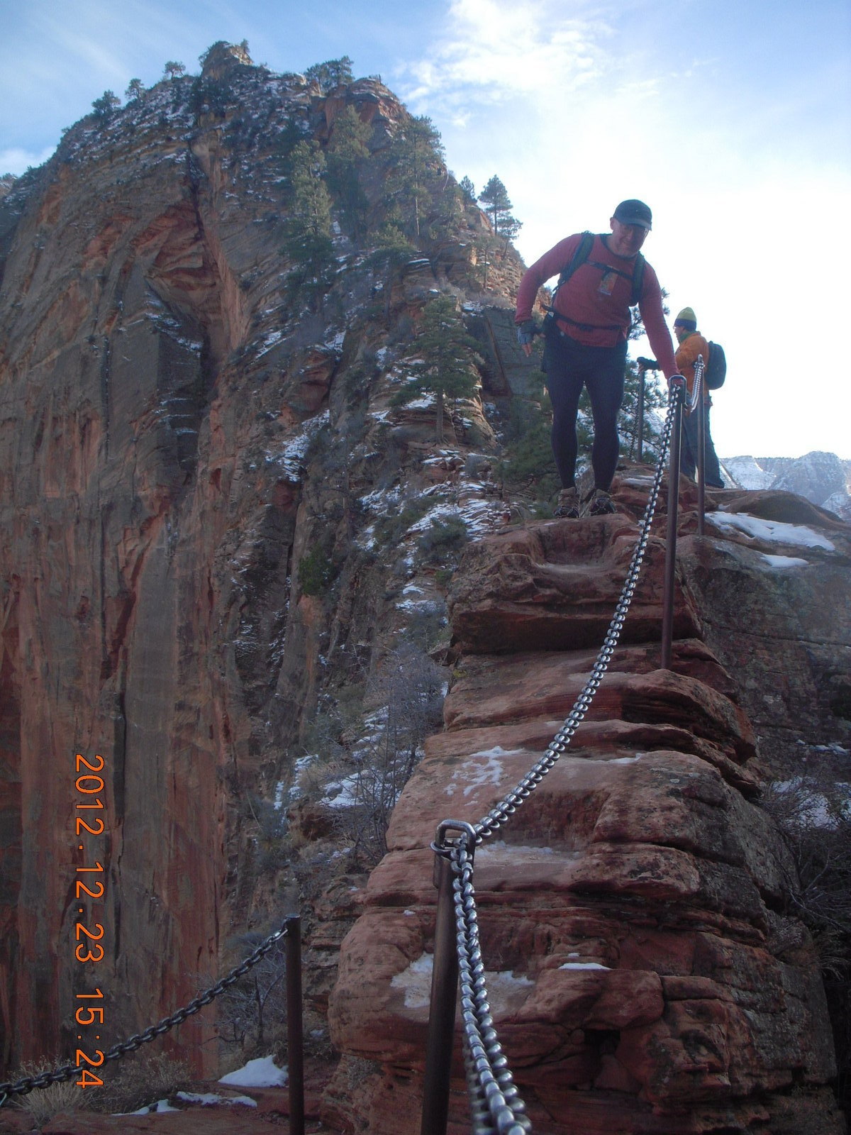 207 84p. Zion National Park - Angels Landing hike - Adam using chains