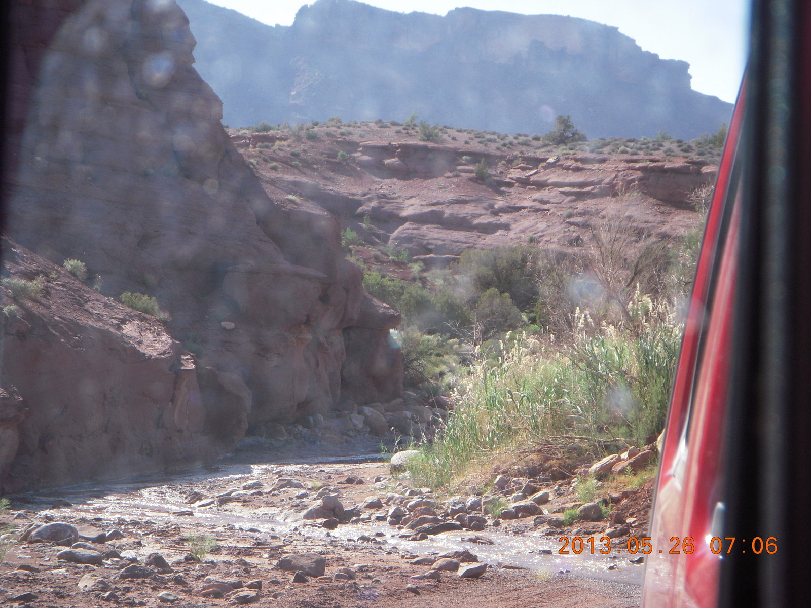 2013 May 27, Monday, 89t-7lp.jpg * Onion Creek drive - Fisher Tower in distance
