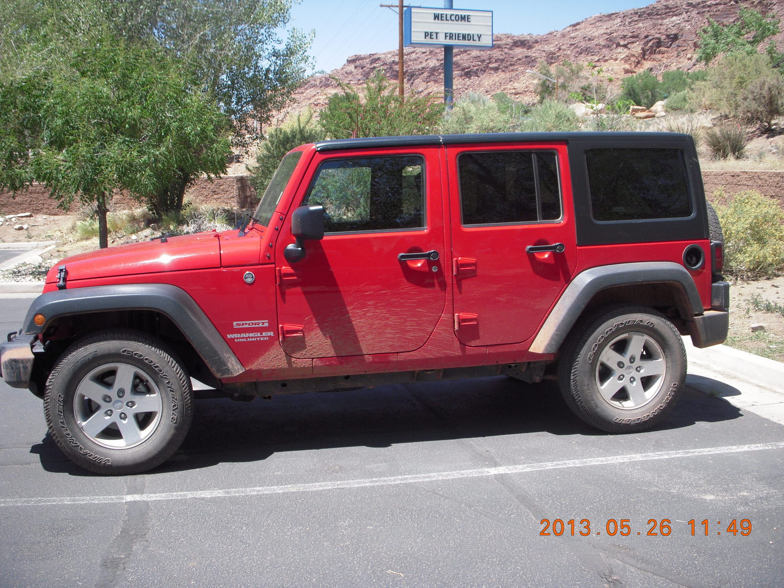 2013 May 27, Monday, 89t-7lh.jpg * Onion Creek drive - Adam and red Jeep