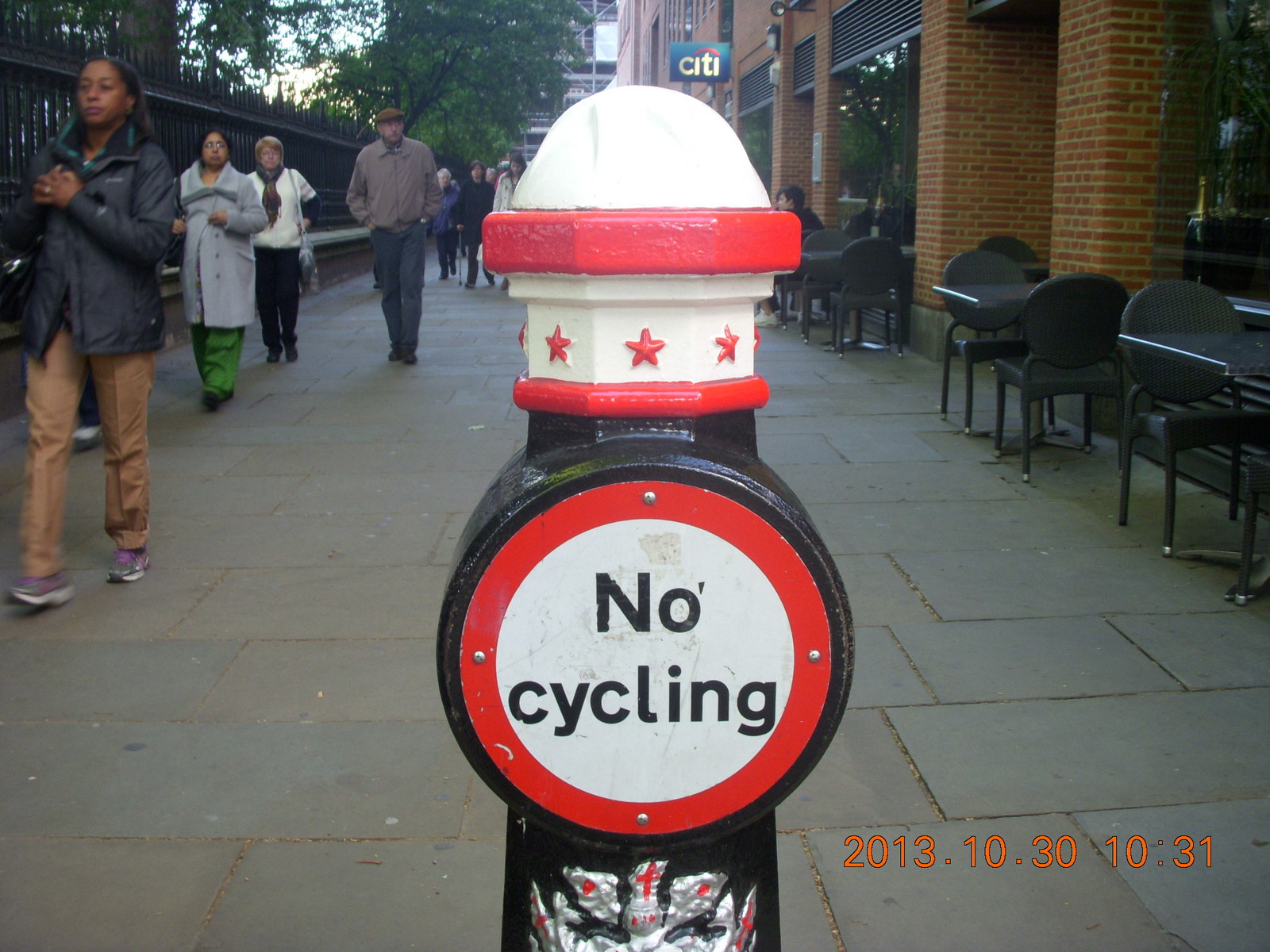 2013 October 31, Thursday, 8ex-9p0.jpg * London run - NO CYCLING sign