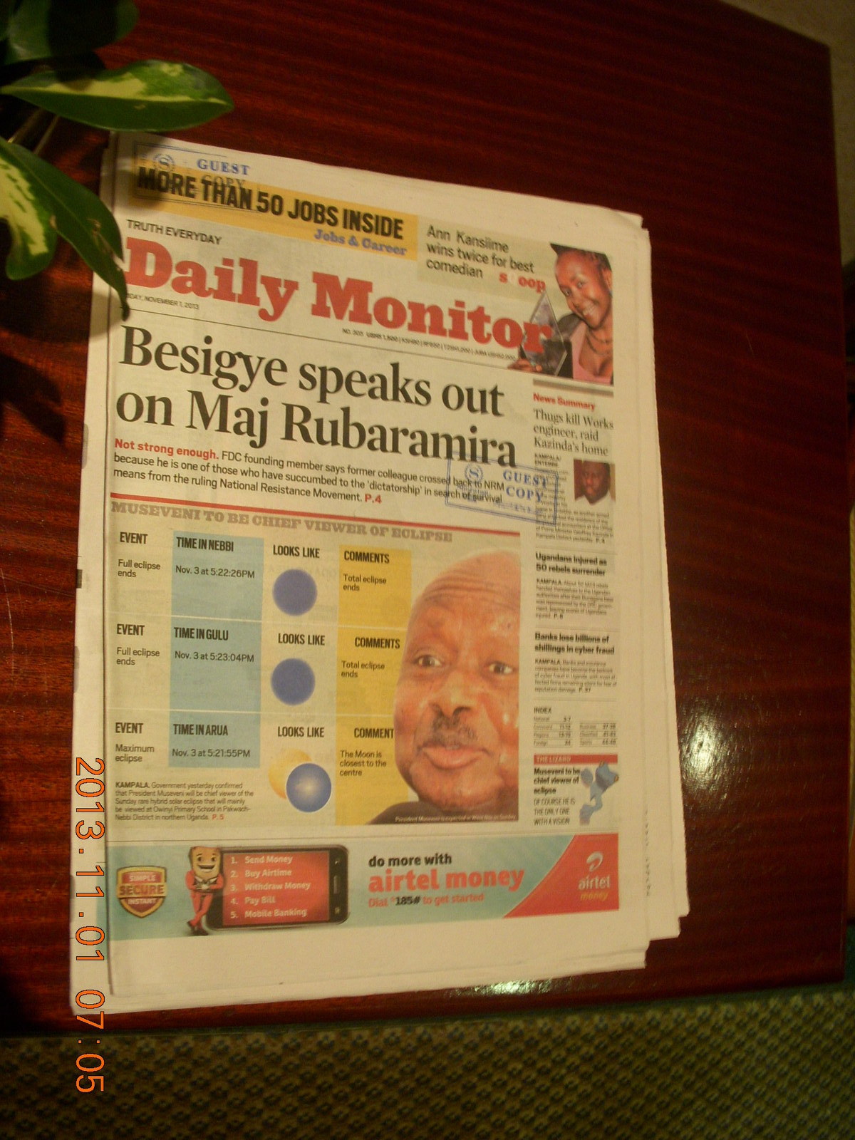 2013 November 2, Saturday, 8f2-oqw.jpg * Uganda - Kampala - Sheraton - newspaper