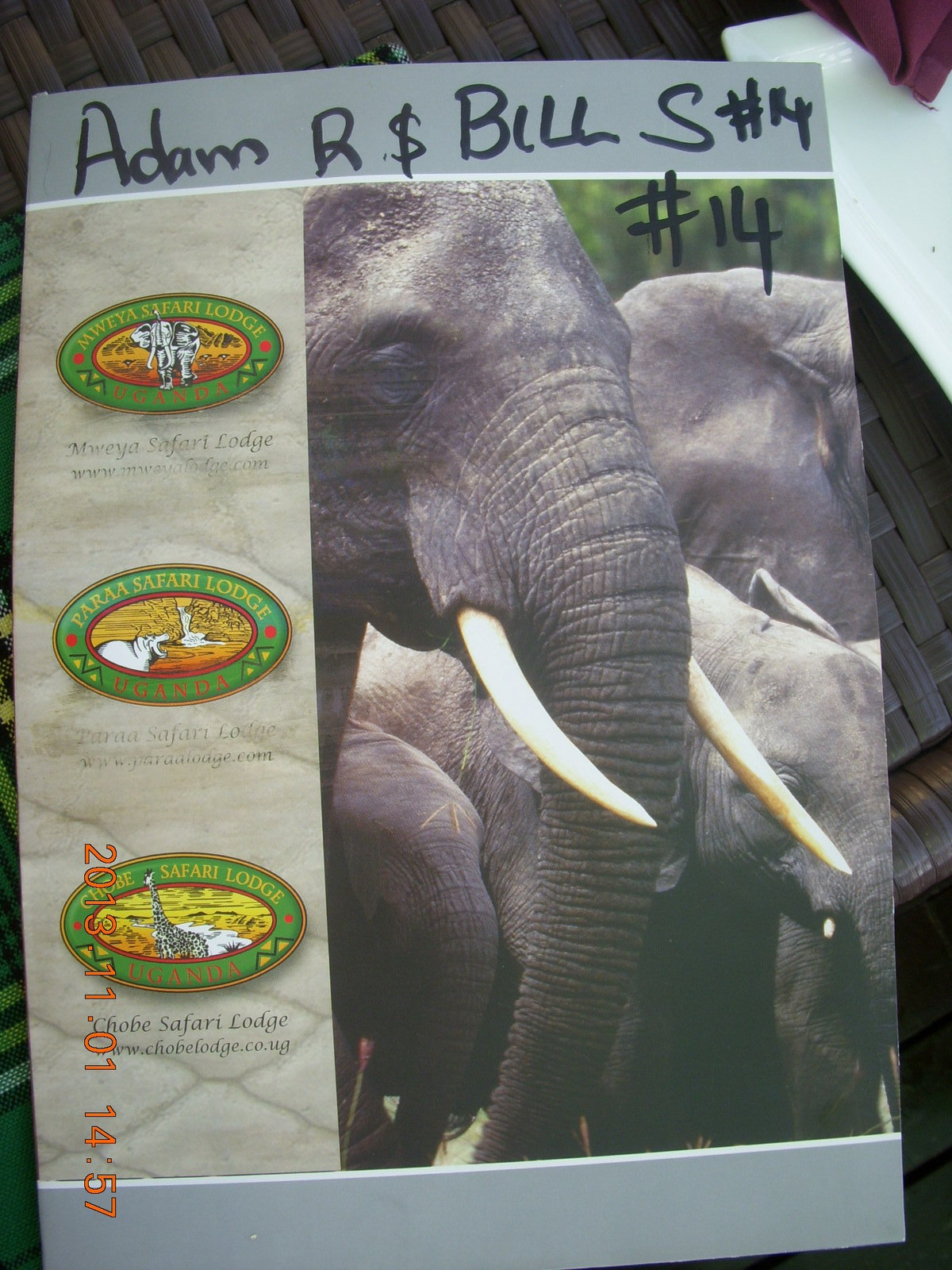 2013 November 2, Saturday, 8f2-ory.jpg * Uganda - drive north to Chobe Sarari Lodge - my drinks