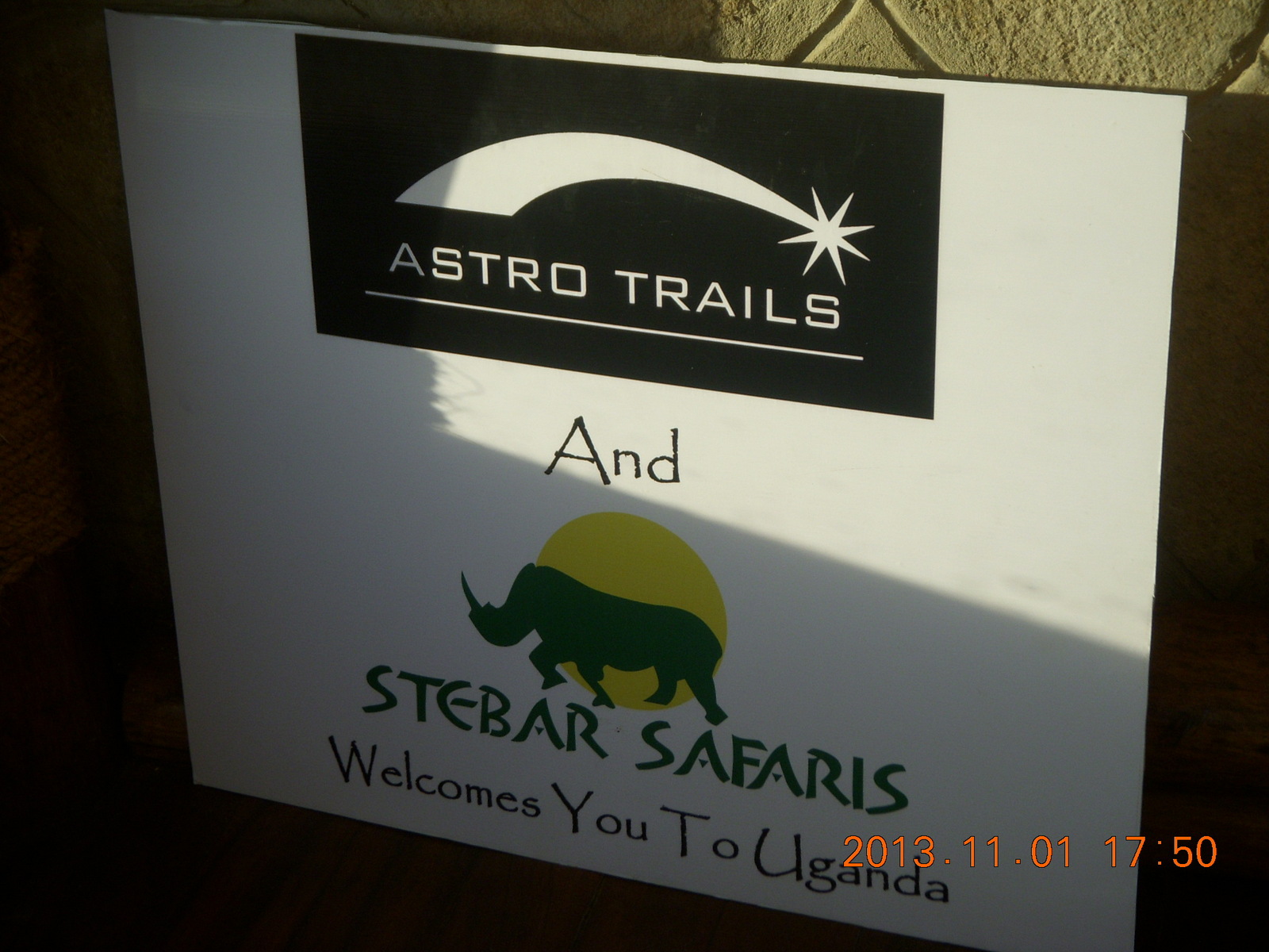 217 8f1. Uganda - Chobe Sarari Lodge - Astro Trails sign
