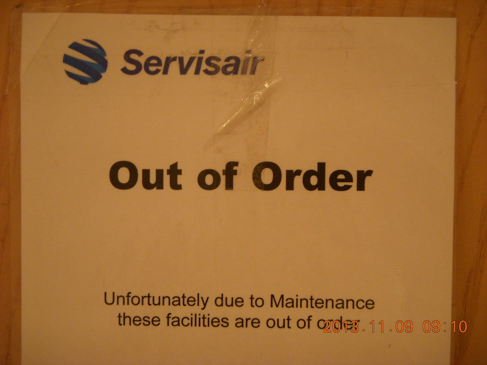 2013 November 10, Sunday, 8fa-7o6.jpg * sign in Heathrow Airport (LHR) lounge - Out of Order due to maintenance - I thought they got things *IN* order