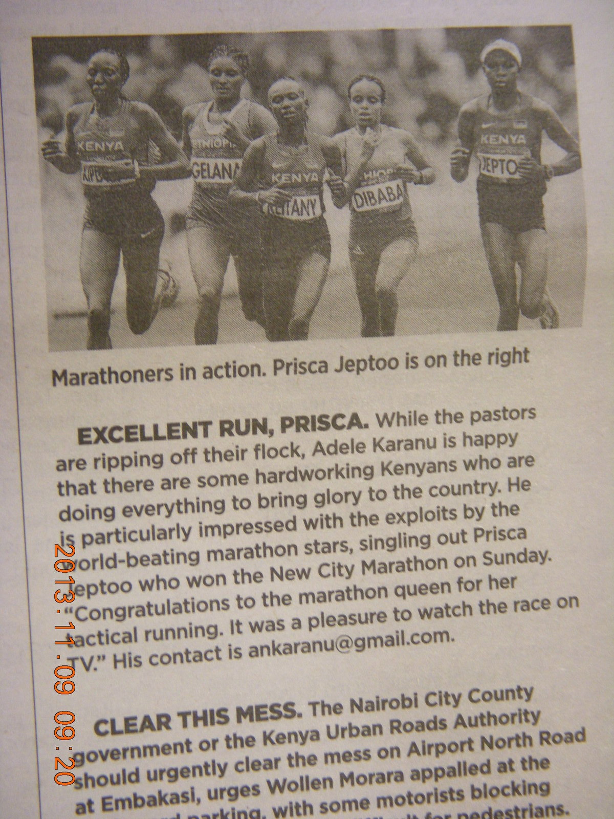2013 November 10, Sunday, 8fa-7ob.jpg * Kenya Africa newspaper - article on Kenyan star runner