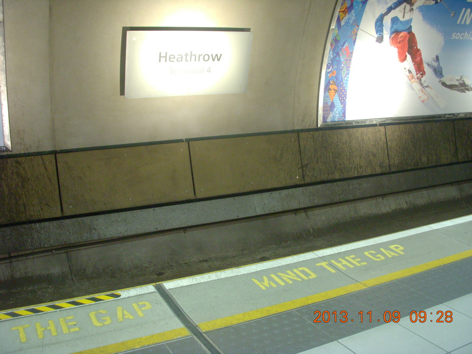 2013 November 10, Sunday, 8fa-7of.jpg * Heathrow Airport express train - MIND THE GAP
