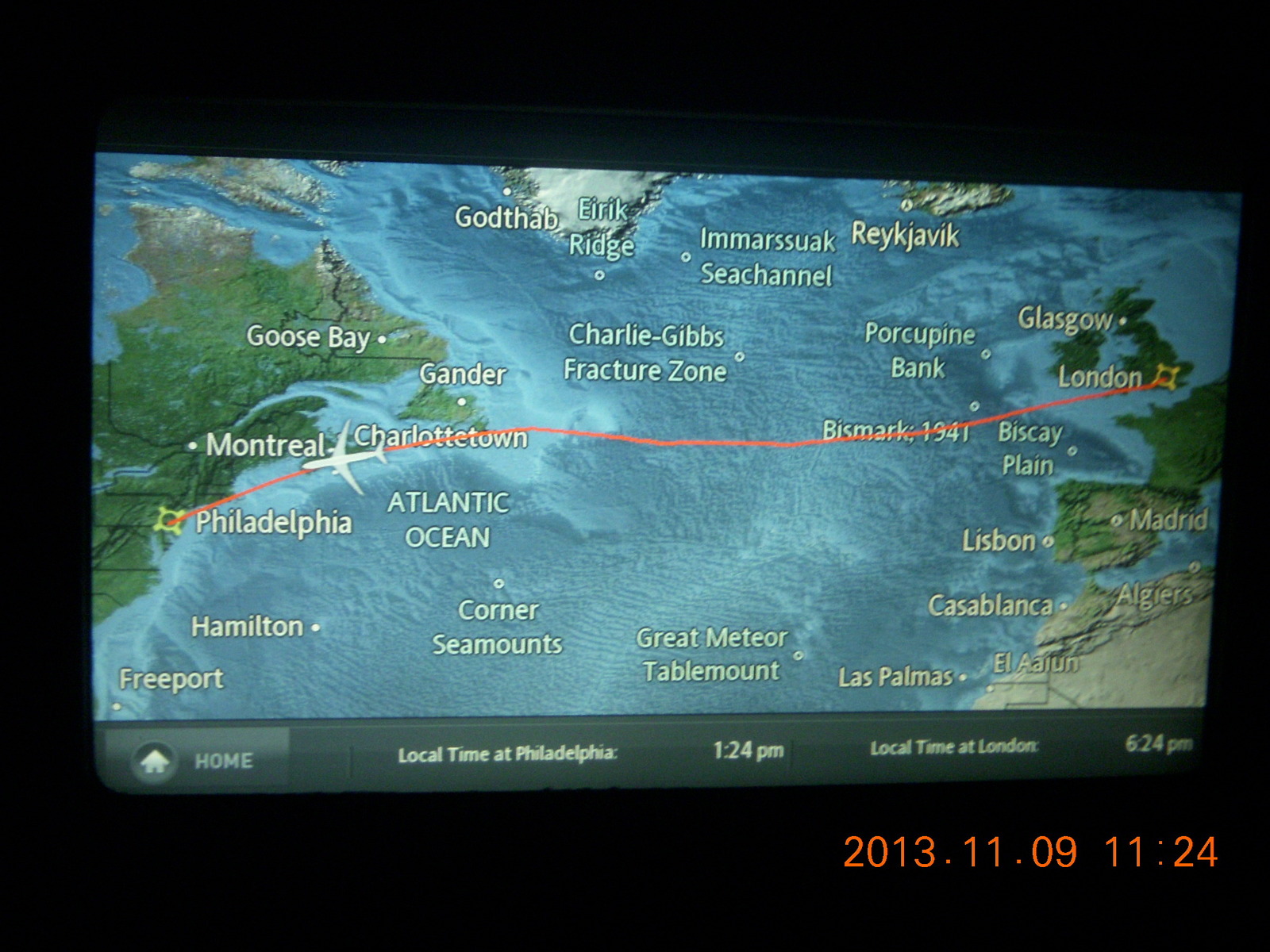 2013 November 10, Sunday, 8fa-7oh.jpg * London to Philadelphia map display