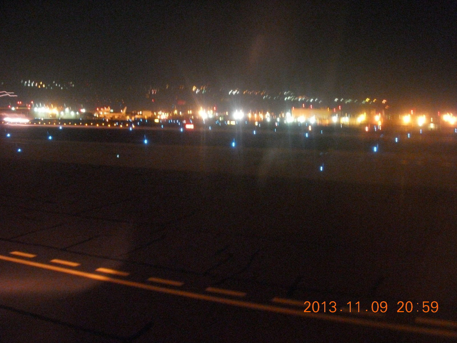 2013 November 10, Sunday, 8fa-7om.jpg * taxiway lights at Phoenix - 20 minute wait for gate after 39 hours of travel