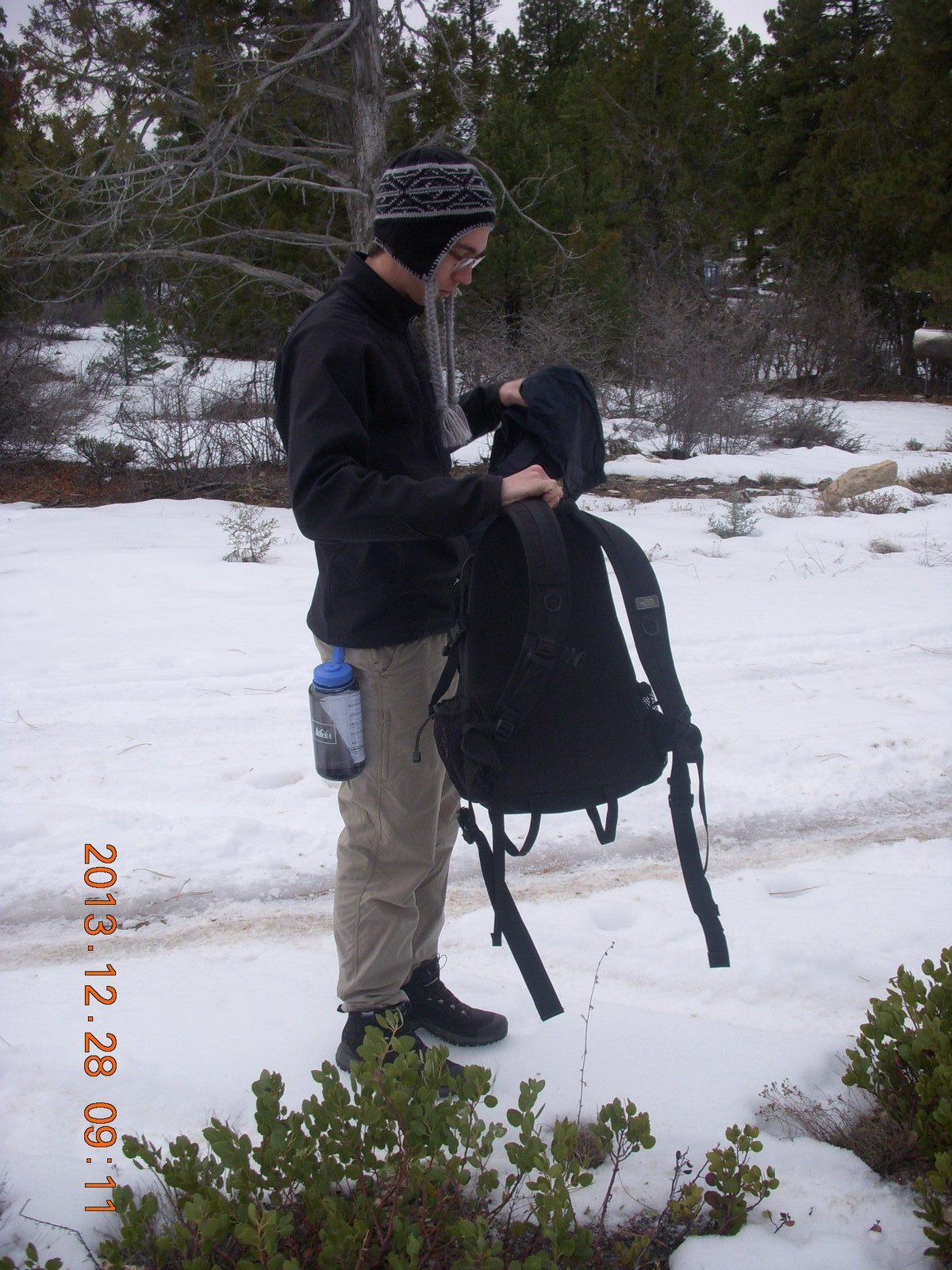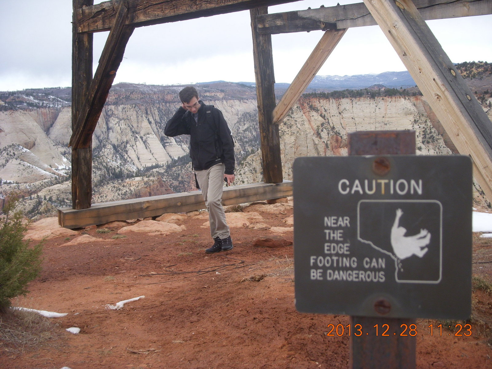2013 December 29, Sunday, 8gv-1jk.jpg * Zion National Park - Cable Mountain hike - Brian making a snow angel