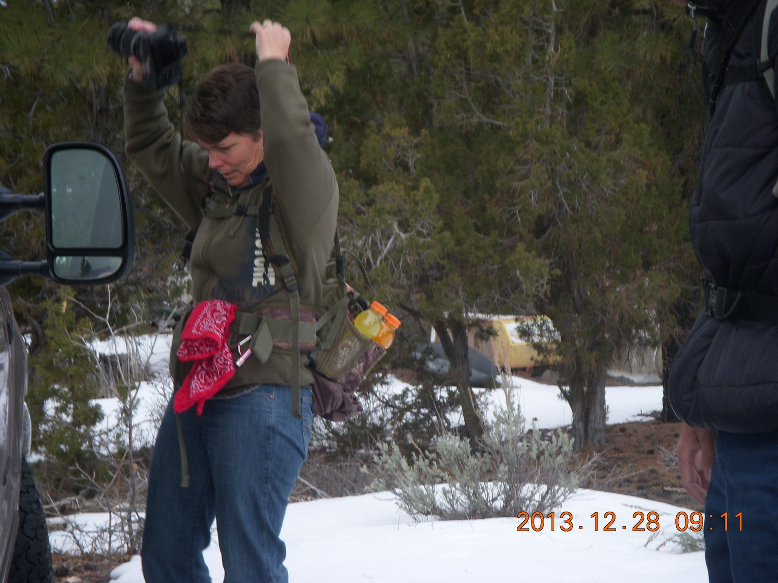 2013 December 29, Sunday, 8gv-1jm.jpg * Zion National Park - Cable Mountain hike - Karen taking a picture