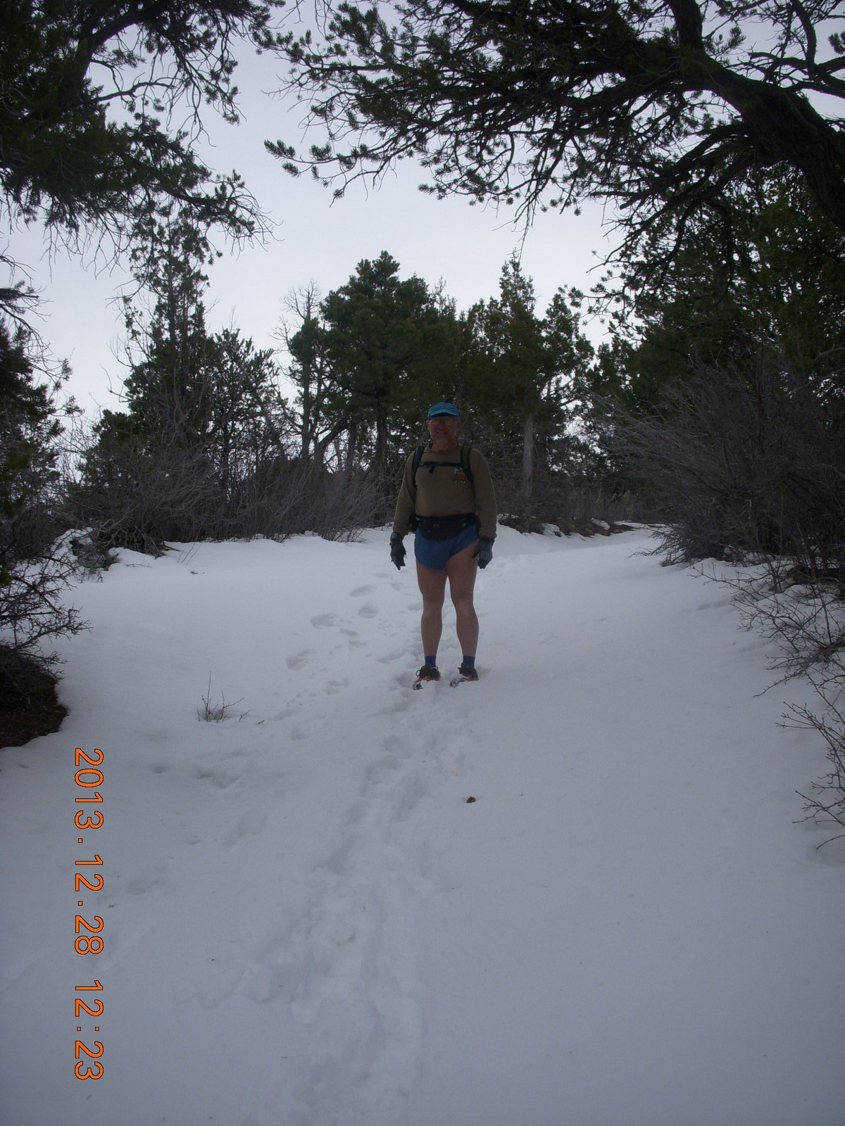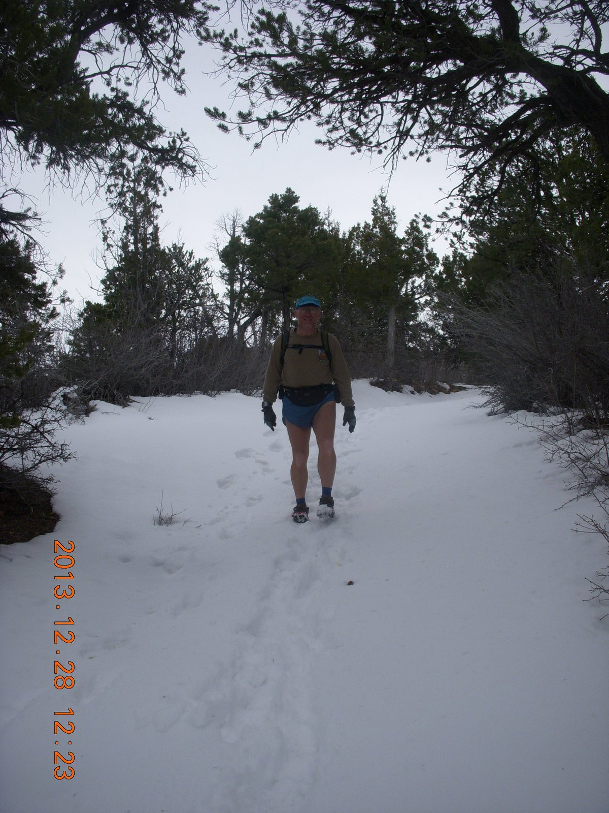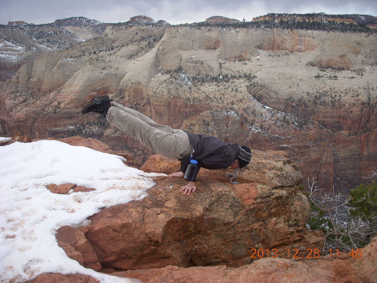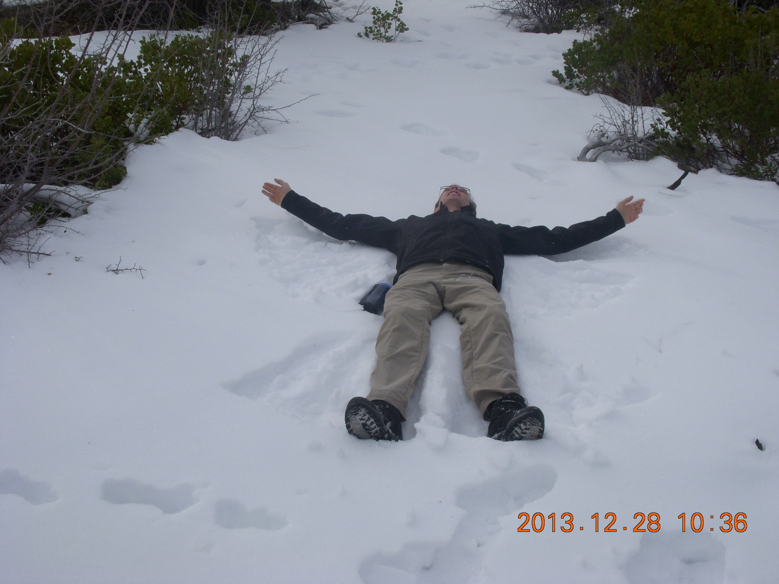 2013 December 29, Sunday, 8gv-1ji.jpg * Zion National Park - Cable Mountain hike - Brian making a snow angel