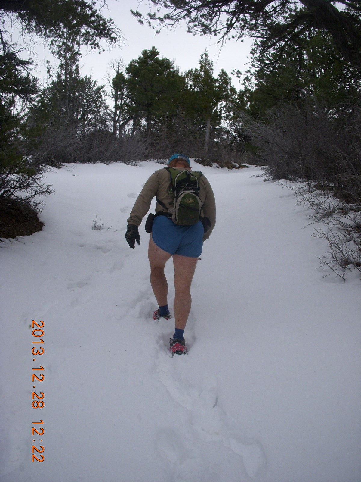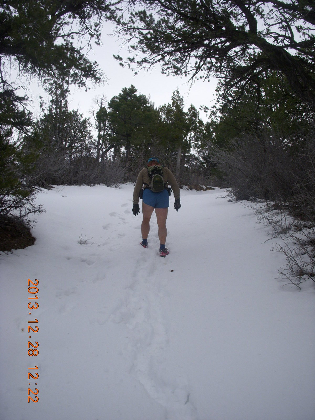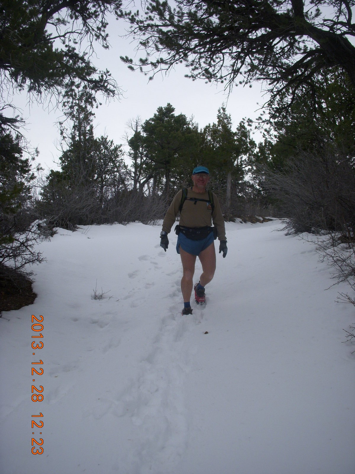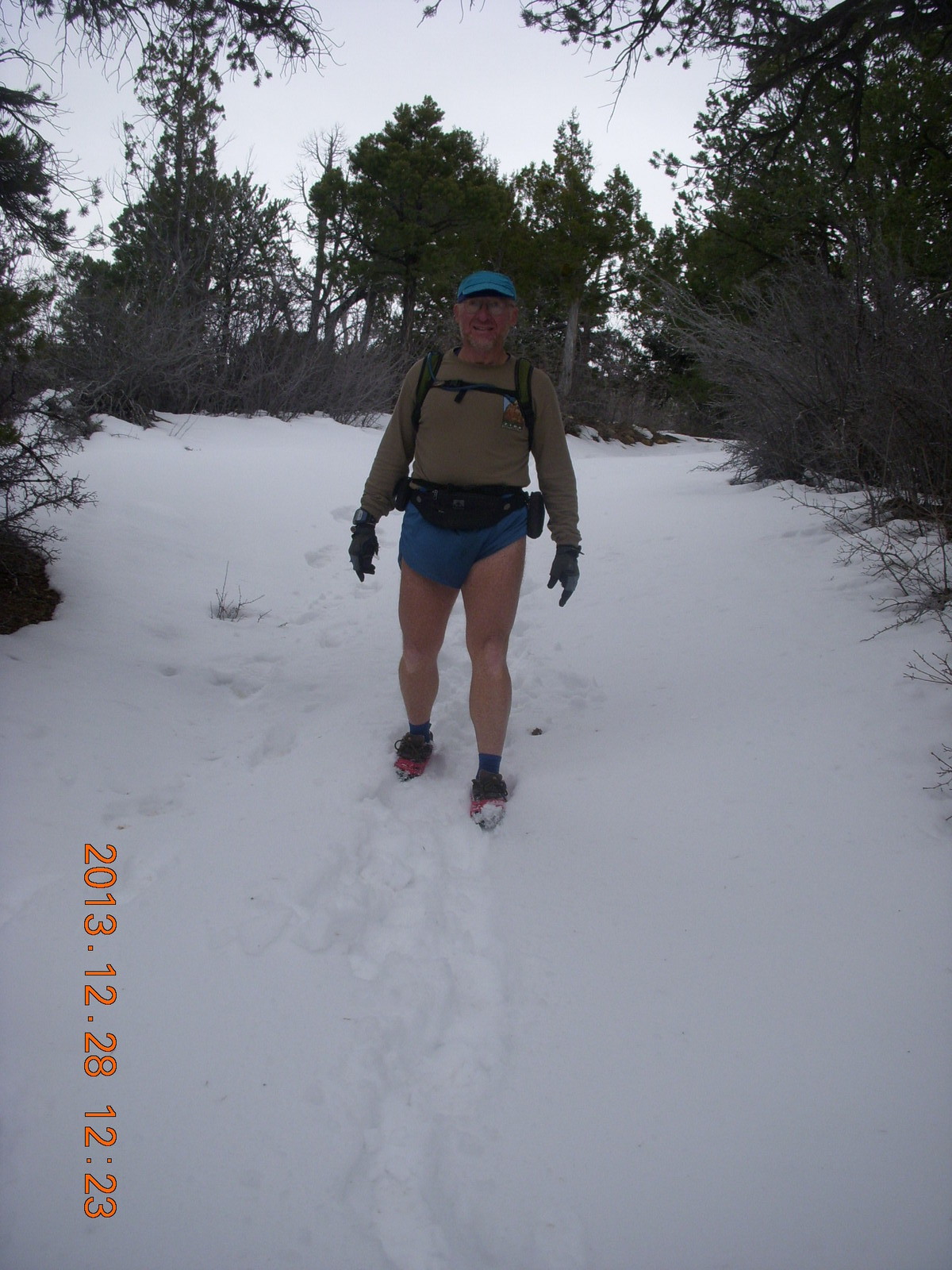 2013 December 29, Sunday, 8gv-1ji.jpg * Zion National Park - Cable Mountain hike - Brian making a snow angel