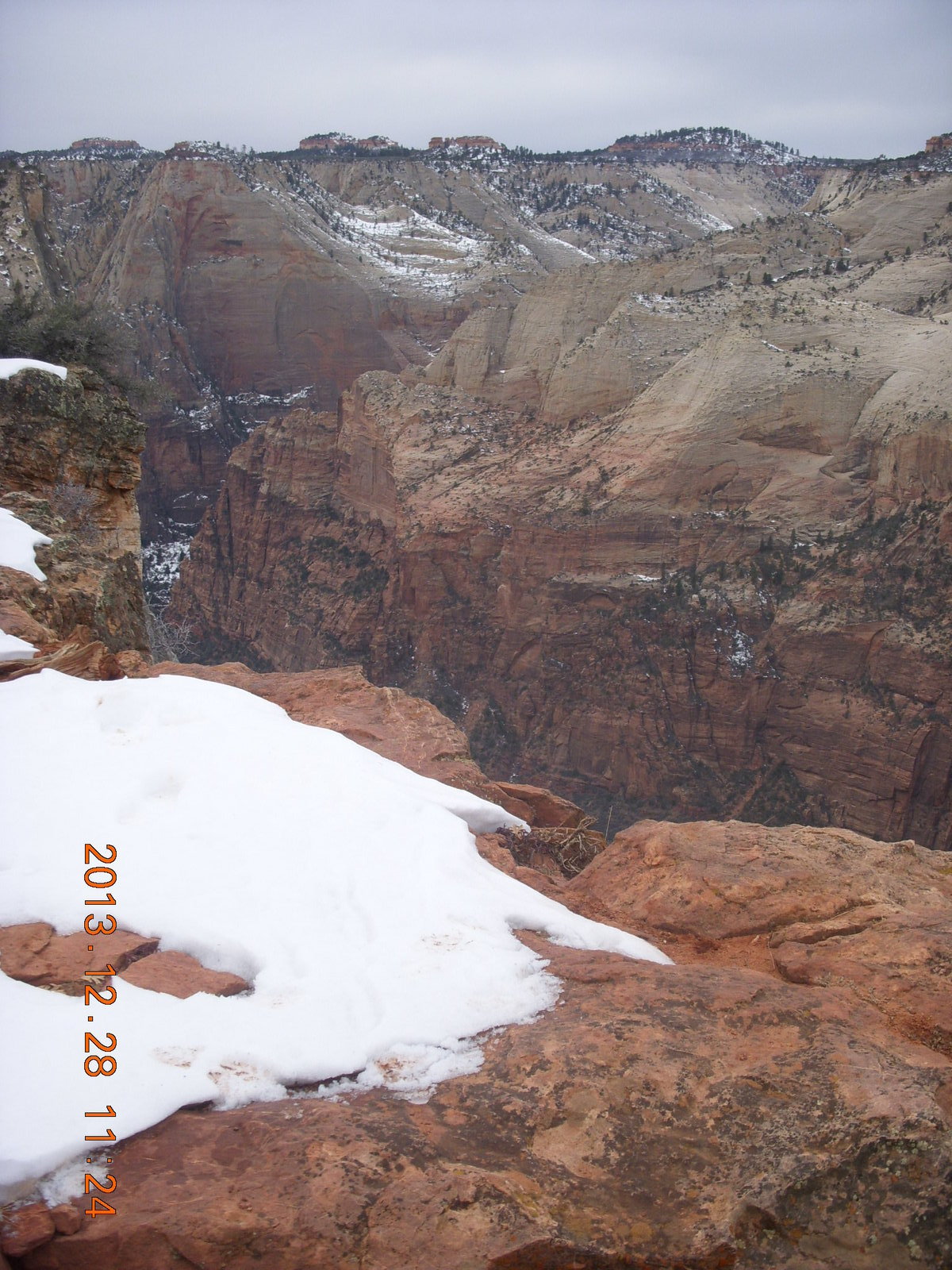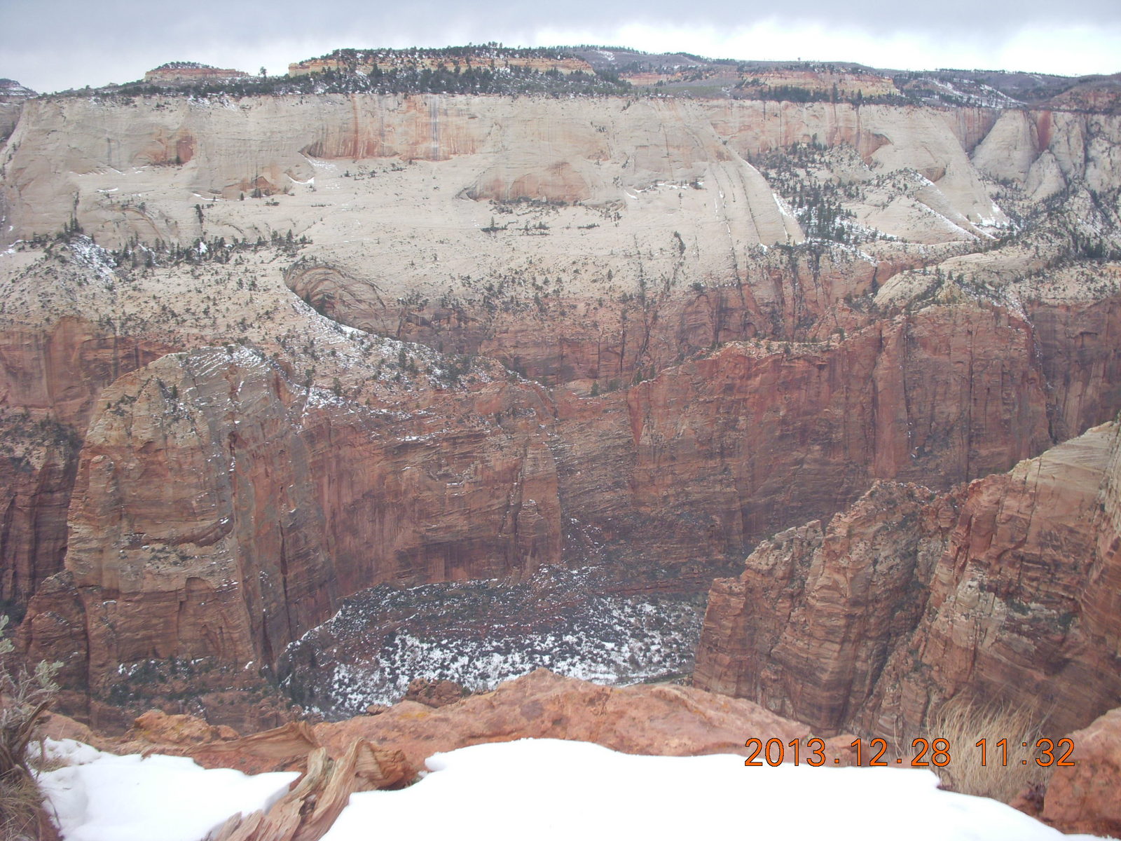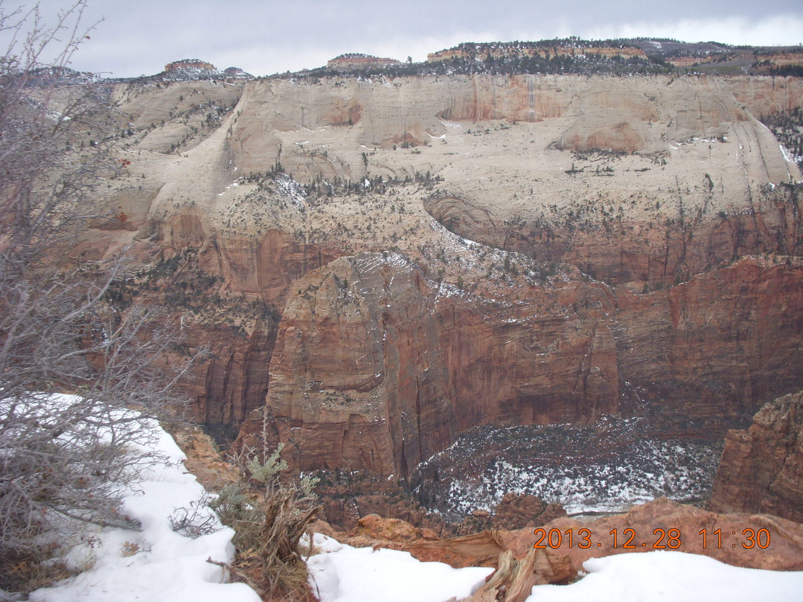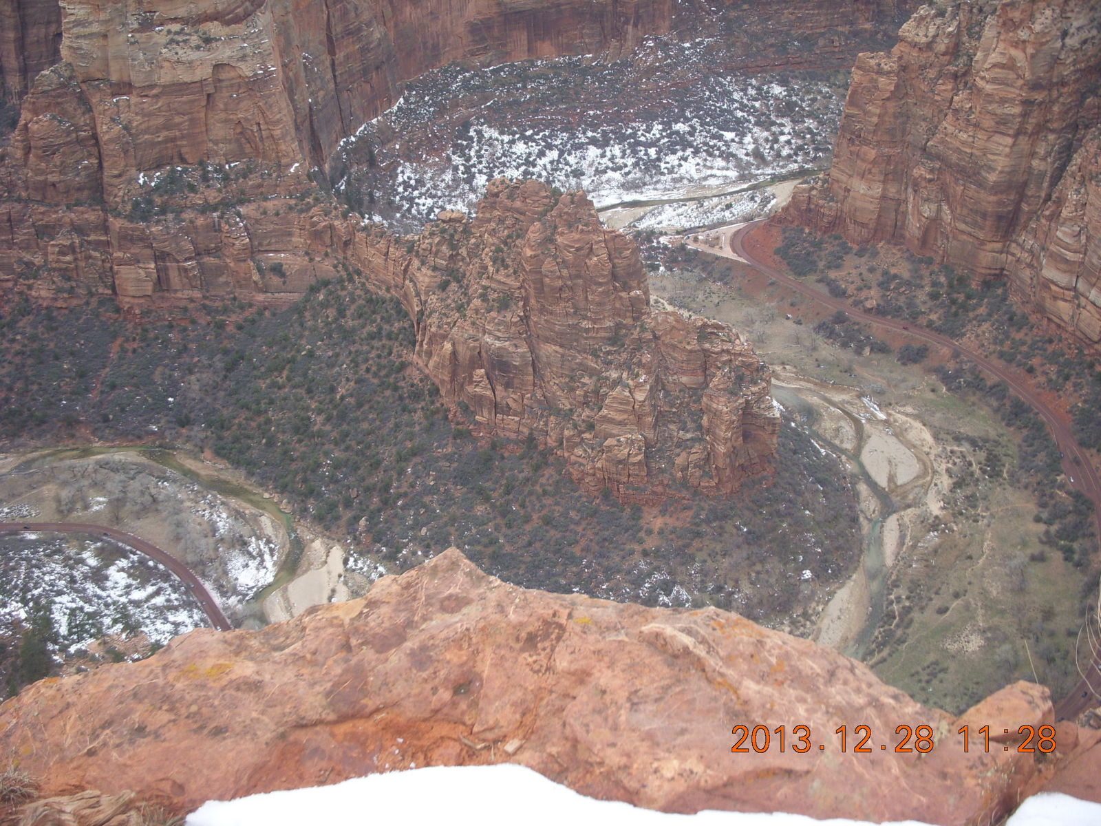 2013 December 29, Sunday, 8gv-1kg.jpg * Zion National Park - Cable Mountain hike end view - snowy switchbacks