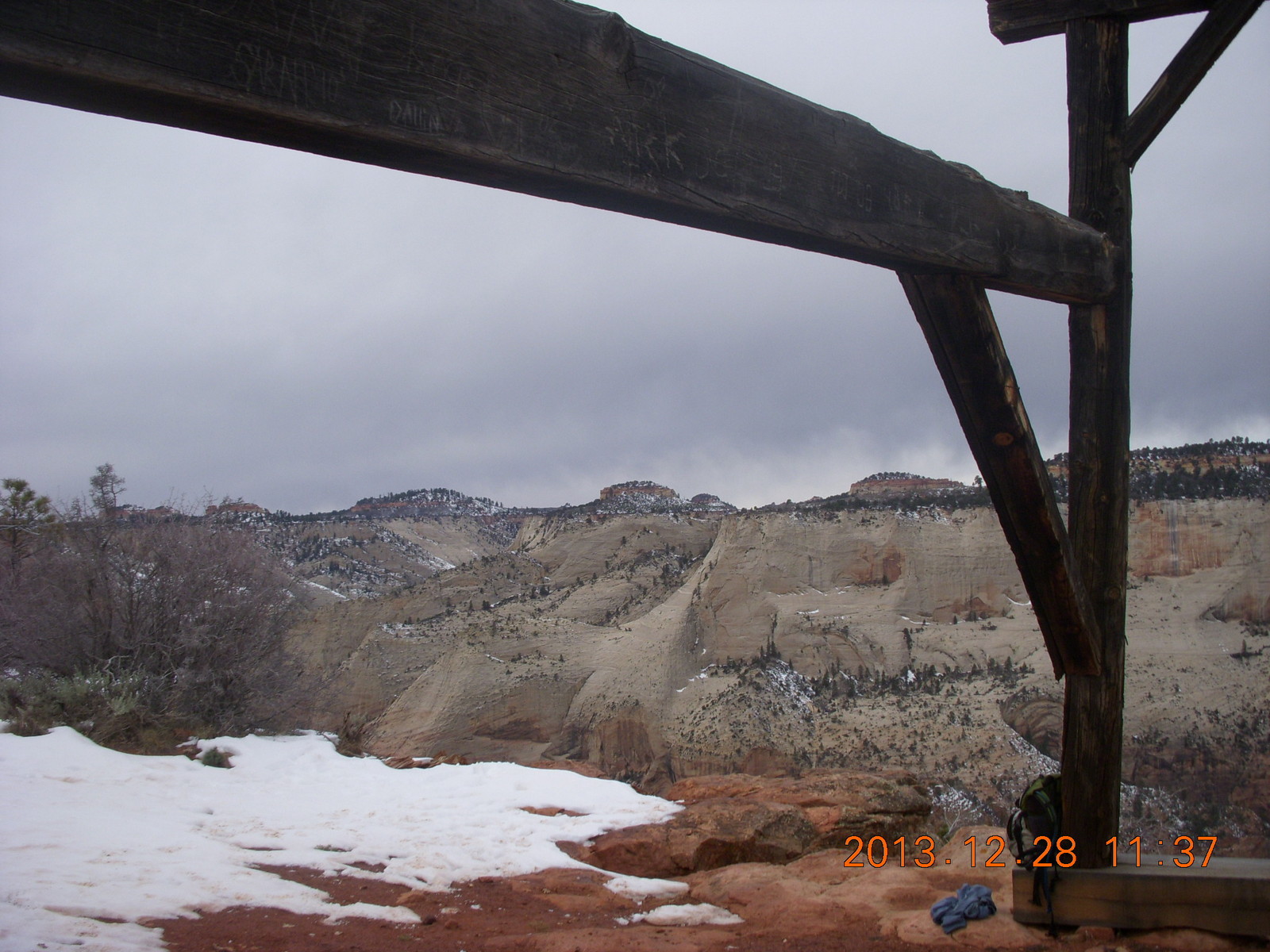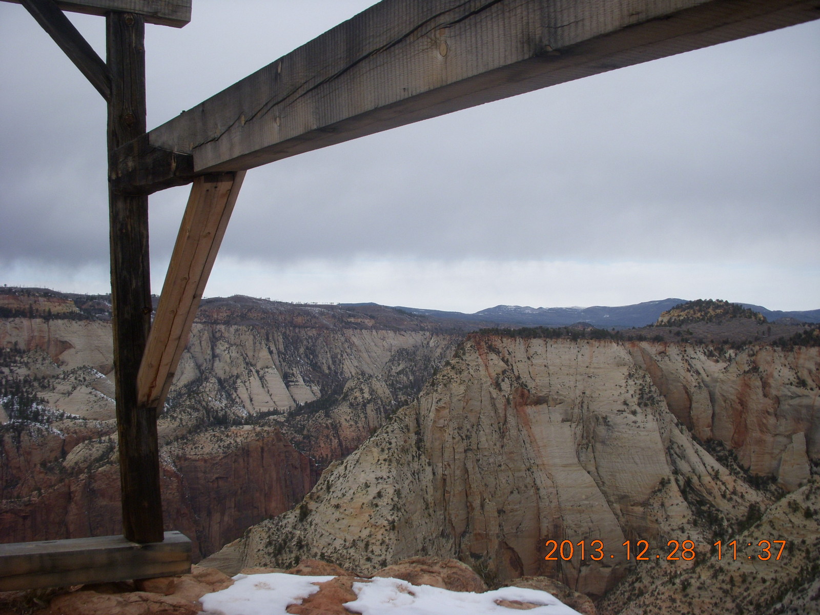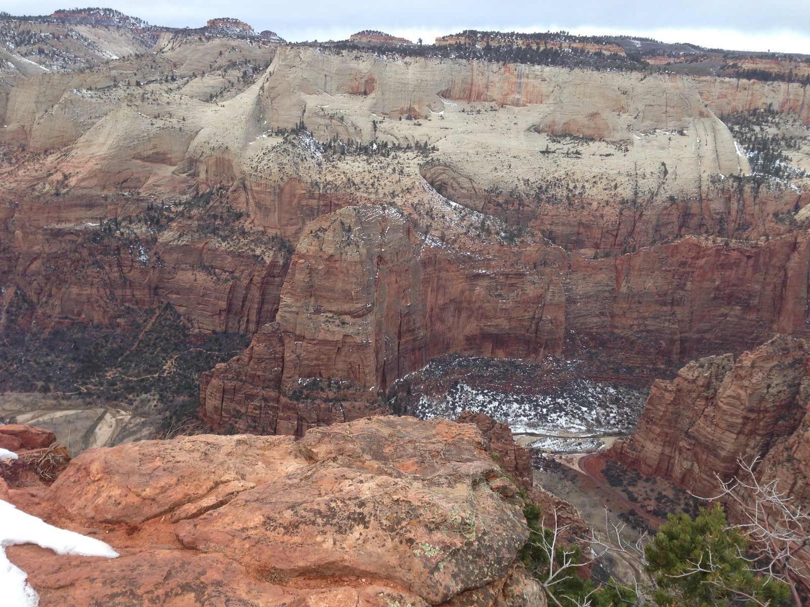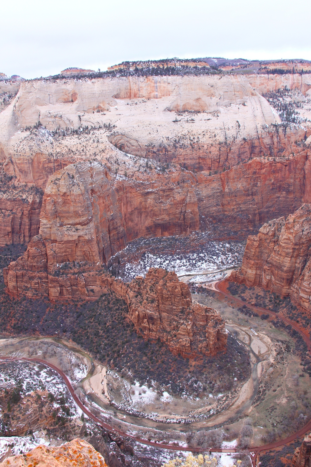 2013 December 29, Sunday, 8gv-1kg.jpg * Zion National Park - Cable Mountain hike end view - snowy switchbacks
