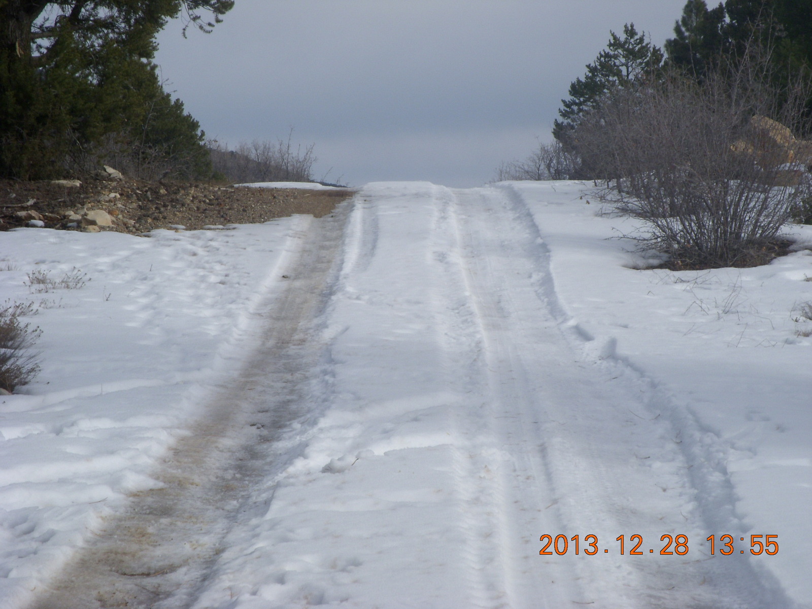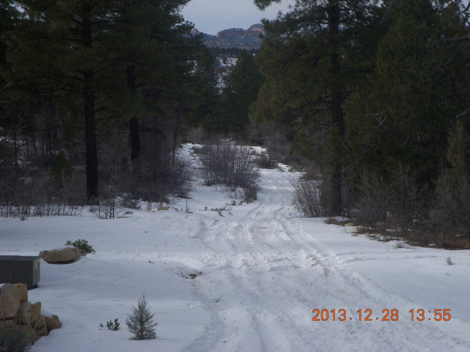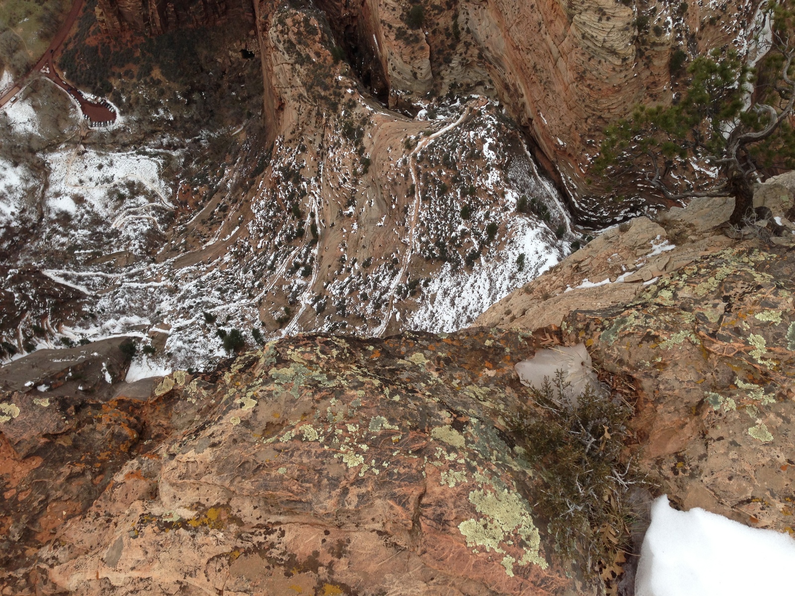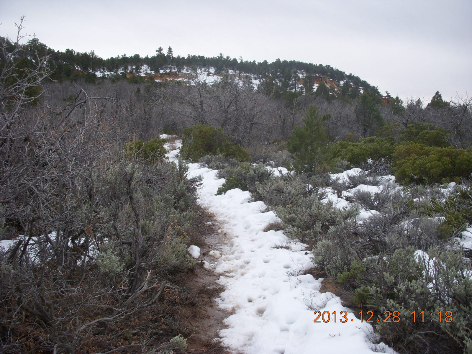 2013 December 29, Sunday, 8gv-1kg.jpg * Zion National Park - Cable Mountain hike end view - snowy switchbacks